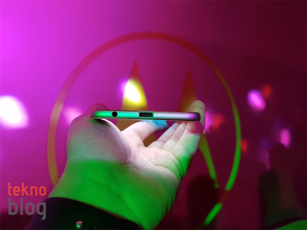 Telefonun üst kenarında nano SIM ve microSD kart tepsisini barındıran yuva yer alıyor. Bu tepsi özel iğnenin yardımıyla açılıyor. Alt kenarın ortasında ise USB-C girişi bulunuyor. Z2 Play’in pili bu giriş üzerinden bulunuyor. 3.5 mm. kulaklık jakı da Z2 Play’in alt kenarının diğer sakinleri arasında yer alıyor.