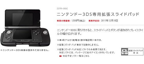 Nintendo, bu yılın başlarında piyasaya sürdüğü 3DS üzerinde yaptığı çeşitli güncellemeleri duyurdu. Üç yeni duyuruyu kapsayan bu güncellemelerden ilki geçtiğimiz hafta su yüzüne çıkan analog kontrol aksesuarıyla ilgili. 20 Aralıkta Japonya’da piyasada olacak bu aksesuar 1500 Japon yeni (35 TL) fiyatla satılacak. Aksesuarın gücü ise tek bir AAA pille sağlanıyor.