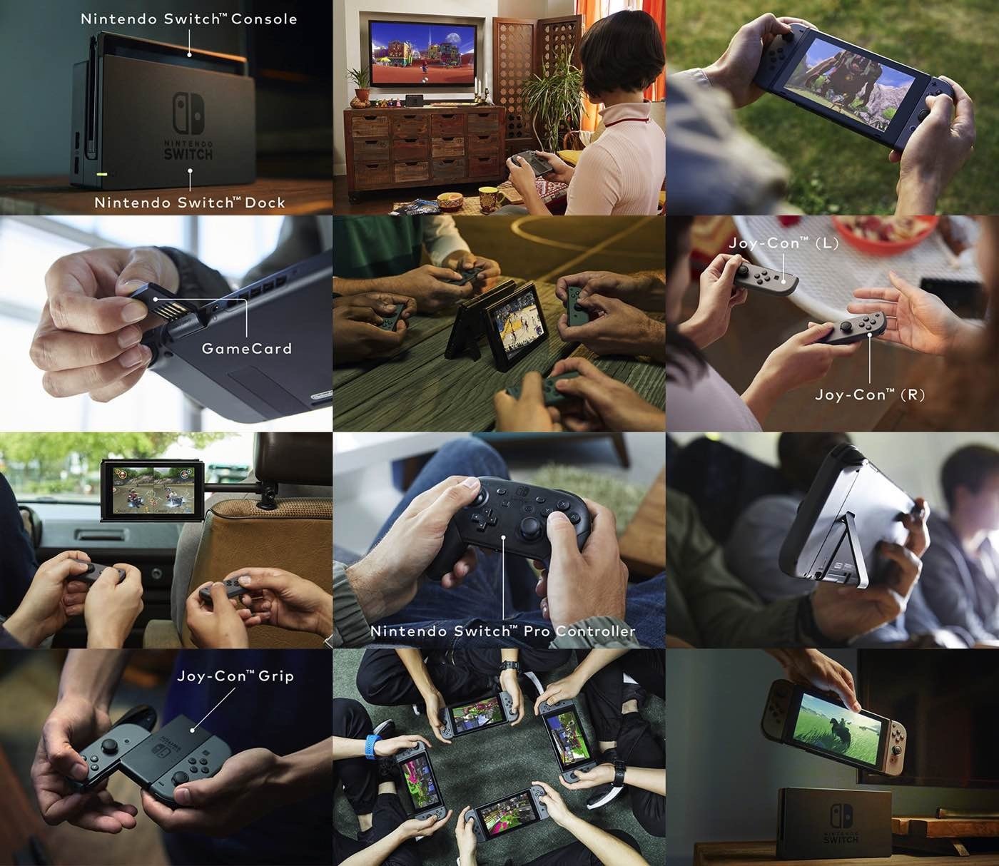 Nintendo Switch hem mobil konsol hem de ev konsolu deneyimini bir arada sunan hibrit bir cihaz. Tablet elemanı ve çıkarılabilir kumandaları bulunuyor.
