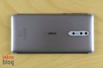 Metalle kaplı arka yüzeyde ise dikkat çeken ilk unsur kameraların yerleştirildiği bölüm bulunuyor. Burası eski Nokia telefonlarını andırıyor. Tabii ki, bunda Zeiss markasının etkisi de var. 13 megapiksel çözünürlüklü iki kamera ve flaşı burada görüyoruz. Bu kamera kümesinin hemen yanında da ikinci mikrofon bulunuyor. Nokia logosu da yatay eksende, bir fotoğraf makinesi havası verecek şekilde yerleştirilmiş.