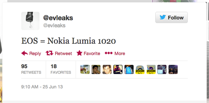 Son zamanlarda boş çıkmayan sızıntılarıyla bilinen @evleaks tayfasının geçtiği son tweet’lerden bir tanesinde EOS’un Nokia Lumia 1020 adıyla çıkacağı iddia ediliyor. Eğer bu iddia doğru çıkarsa, Nokia’nın telefon yelpazesi içinde yepyeni bir seri daha tanımlanmış olacak demektir.