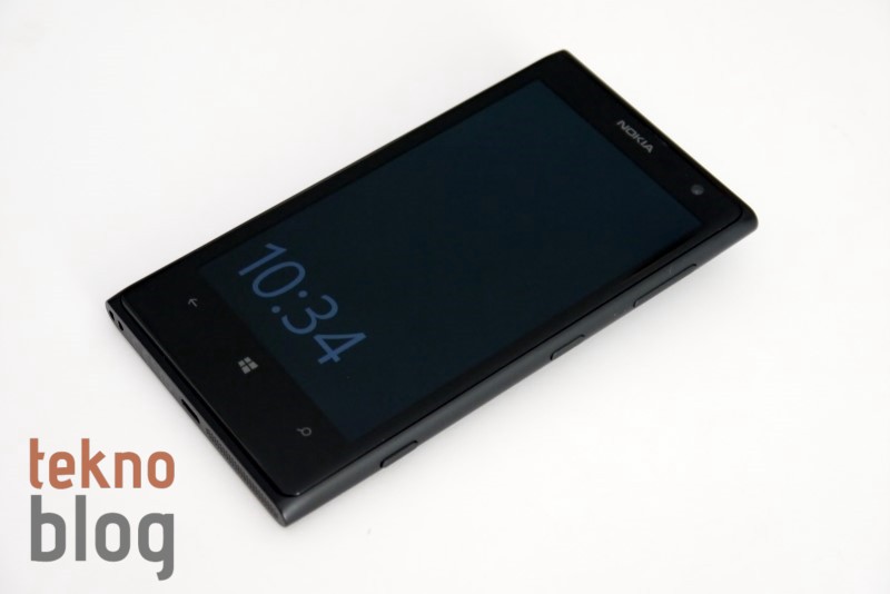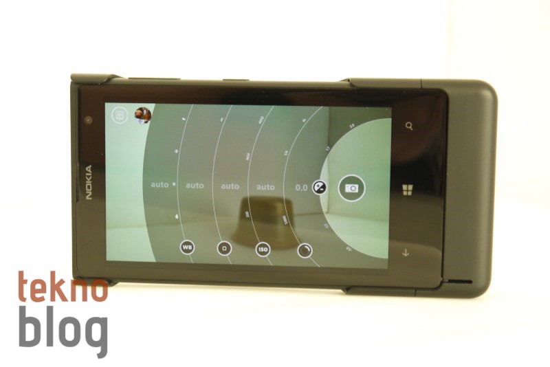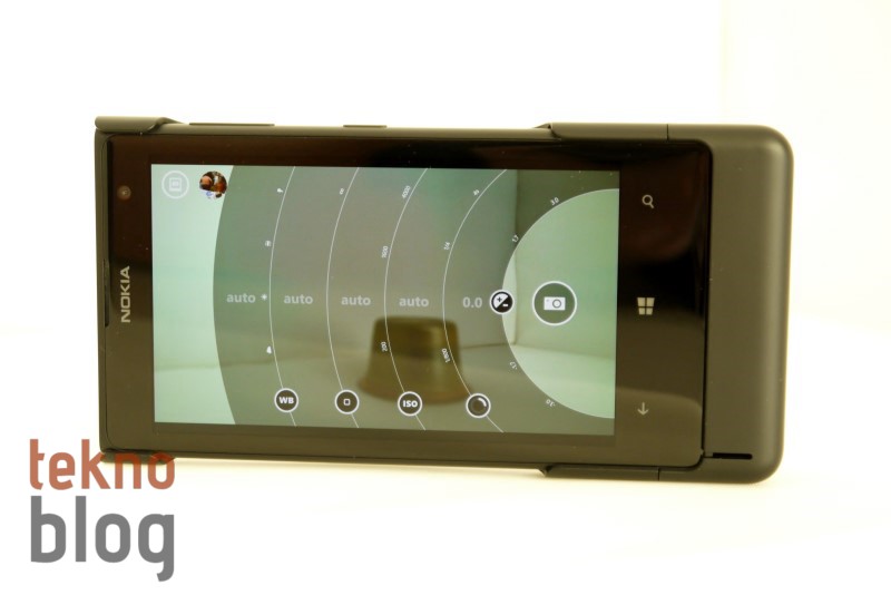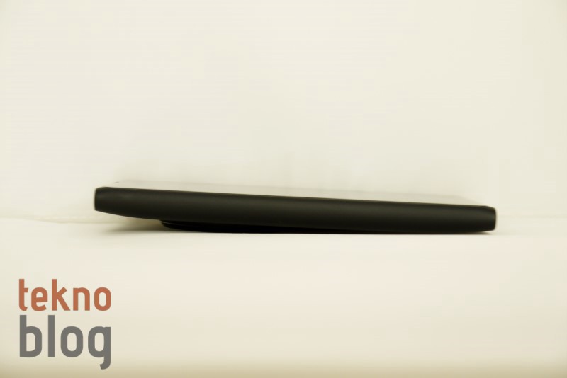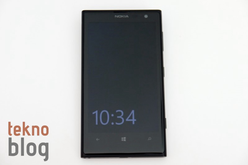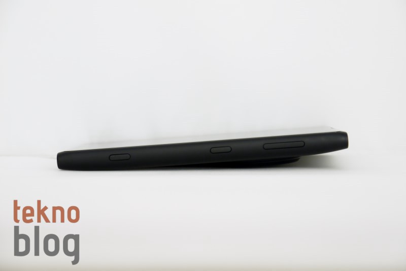 Nokia 808 PureView’ın arkasında, kameranın bulunduğu bölüm bir hayli şişkindi ve bu telefonu epey kalınlaştırıyordu. Nokia Lumia 1020’de kalınlığı azaltma noktasında önemli adımlar atılmış, yine de kamera sisteminin bulunduğu dairesel yapı telefonun bir yüzey üstünde hafif eğik durmasına neden oluyor. Telefon bu şekilde dururken parmağınızla hafifçe ittirdiğinizde telefonun neredeyse bir tam tur attığını görebilirsiniz. Söylemek istediğimiz, telefon yüzey üstünde, ekran yüzü üste bakarken kararlı şekilde durmuyor. Neyse ki, ekran çizilmelere karşı dayanıklı Gorilla Cam 3 ile kaplı. Yani Lumia 1020’yi bir yüzeye kamerası üste bakacak şekilde koysanız da olur. Zaten Nokia da bunu öneriyor. Bu arada kamera sisteminin neden olduğu tümsek Lumia 1020’nin tutuşunu biraz zorlaştırıyor.