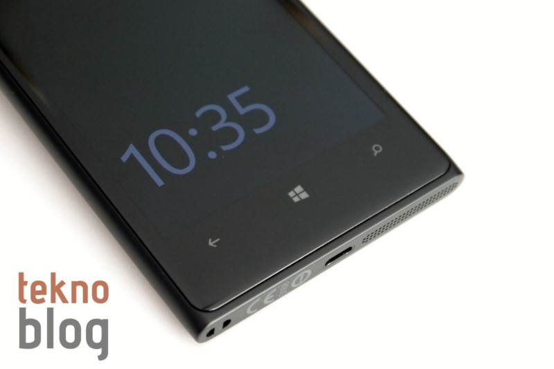 4.5 inç ekranın altında Windows Phone’un navigasyon tuşları bulunurken üstte de Nokia logosu, ahize hoparlörü ve 1.2 megapiksel kamera yer alıyor. Üst kenarda microSIM kart yuvası, 3.5 mm. kulaklık jakı ve ikinci mikrofon yer alırken altta da microUSB portu, hoparlör, mikrofon ve bilek kayışı geçirmeyi sağlayan delik bulunuyor. Sol kenar diğer tüm Lumia cihazlarında gördüğümüz gibi temiz bırakılmış. Sağ kenarda ise yukarıdan aşağı doğru ses, güç ve kamera tuşları bulunuyor.