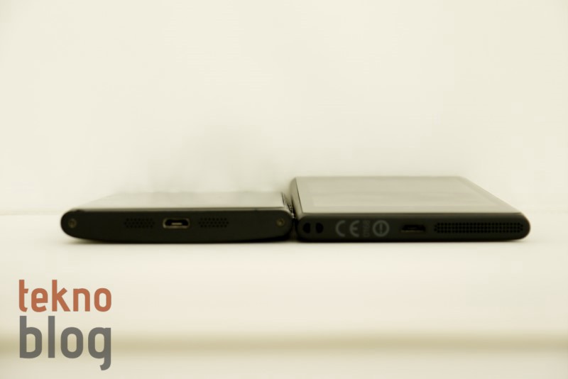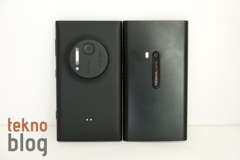 Aradaki küçük farklar dışına Nokia Lumia 1020 ile Lumia 920’nin hemen hemen aynı görünüşe sahip olduğunu rahatlıkla söyleyebiliriz. Her iki telefon da polikarbondan yapılmış kasayla geliyor. 130.4 x 71.4 x 10.4 mm.’lik boyutlara sahip olan Lumia 1020’nin yüzey alanı Lumia 920’ninkinden biraz daha fazla, ancak kalınlık bakımından 0.3 mm. daha düşük. Lumia 920’nin 185 gr.’lık ağırlığına karşın Lumia 1020 158 gr. ile tartıda yaklaşık 30 gr. daha hafif geliyor. Bu ağırlık farkı muhtemelen Lumia 1020’de dahili kablosuz şarj biriminin olmamasından kaynaklanıyor. Nokia Lumia 1020’yi bir elimize, Lumia 920’yi de diğer elimize aldığımızda aradaki farkı az da olsa hissediyoruz.