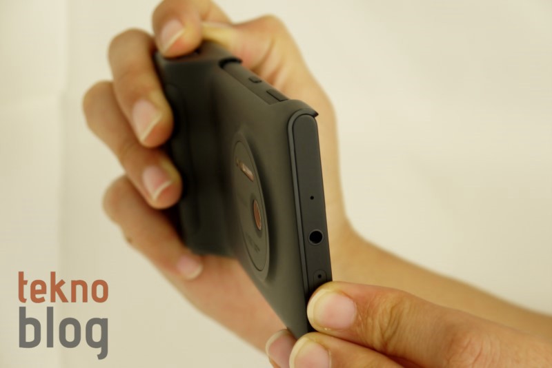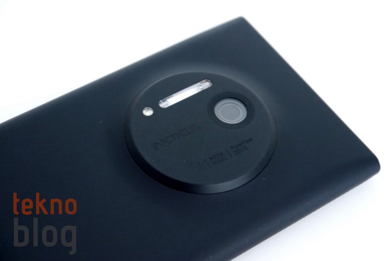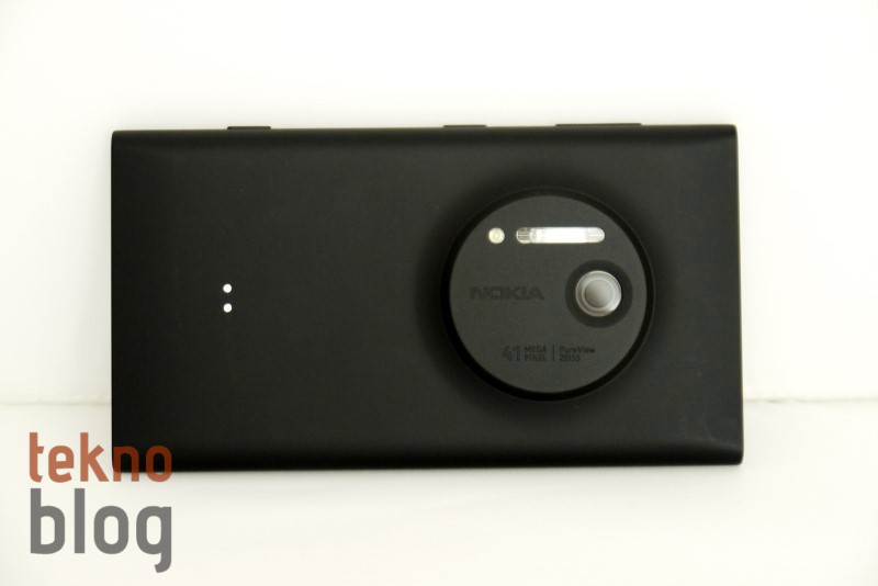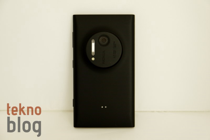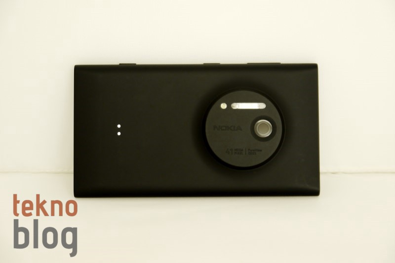 Yukarıda Nokia Lumia 1020’nin arka bölümünden biraz bahsettik. 41 megapiksel PureView Carl Zeiss kamera sisteminin yerleştirildiği dairesel çıkıntı sayesinde Nokia Lumia 1020 bir fotoğraf makinesi havasını veriyor. Lensin hemen üstünde Xenon flaş, onun yanında da yardımcı AF ışığını görüyoruz. Lensin yanında Nokia logosu bulunurken 41 megapiksel, PureView ve Carl Zeiss gibi kamera özelliklerine de atıfta bulunulmadan geçilmemiş. Arkada kameranın dışında iki adet bağlantı noktası dikkat çekiyor. Çeşitli aksesuarların Lumia 1020 ile bağlantısı bu iki nokta sayesinde gerçekleşiyor.