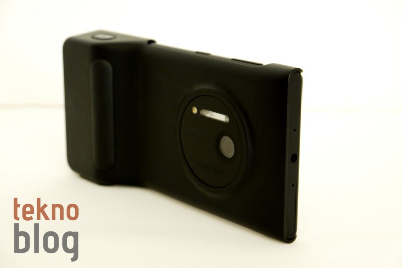 Lumia 1020 ile opsiyonel olarak sunulan Camera Grip adlı aksesuar, bu akıllı telefonu bir fotoğraf makinesi gibi kullanmanıza izin veriyor, ayrıca barındırdığı ek pil sayesinde Lumia 1020 ile yapacağınız çekim miktarını artırıyor. Barındırdığı kabzası sayesinde Lumia 1020 rahatça tutulurken üst bölümde yer alan deklanşör tuşu da dijital fotoğraf makinesi veya küçük bir aynasız kamera hissini daha fazla elde etmeyi sağlıyor. Ayrıca alt bölümünde tripoda bağlamayı sağlayan bir giriş de yer alıyor. Aksesuarın kabza tarafındaki kenarında yer alan düğme ve LED lambalarla dahili pilin doluluk durumunu görmek de mümkün oluyor. Camera Grip ile Lumia 1020 biraz daha ağır veya kaba hâle gelse de, bu telefonu kullanmayı bizim için çok daha zevkli hâle getirdiğini belirtmemiz gerekiyor.