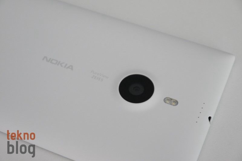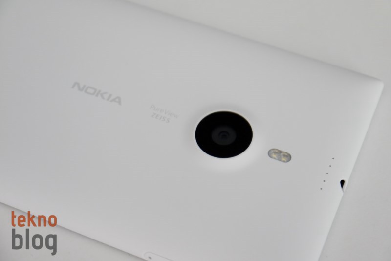 Arka tarafta 20 megapiksel kamera dikkat çeken ilk unsur oluyor. Bu kameranın hemen yanına çift LED flaş yerleştirilmiş. Kenara doğru ilerlemeye devam ettiğimizde beş adet deliğin sıralanmış olduğunu görüyoruz. Bu delikler Nokia’nın Rich Recording olarak adlandırdığı ortam sesinin detaylı biçimde kaydedilmesini sağlayan teknoloji için yerleştirilmiş mikrofonu oluşturuyor. 20 megapiksel kameranın solunda PureView ve ZEISS markaları, onların yanında da Nokia logosu dikkat çekiyor. Tüm bunların yatay eksende sıralanması Nokia Lumia 1520’nin de kameraya odaklanan bir telefon olduğuna yönelik bir işaret sayılabilir.