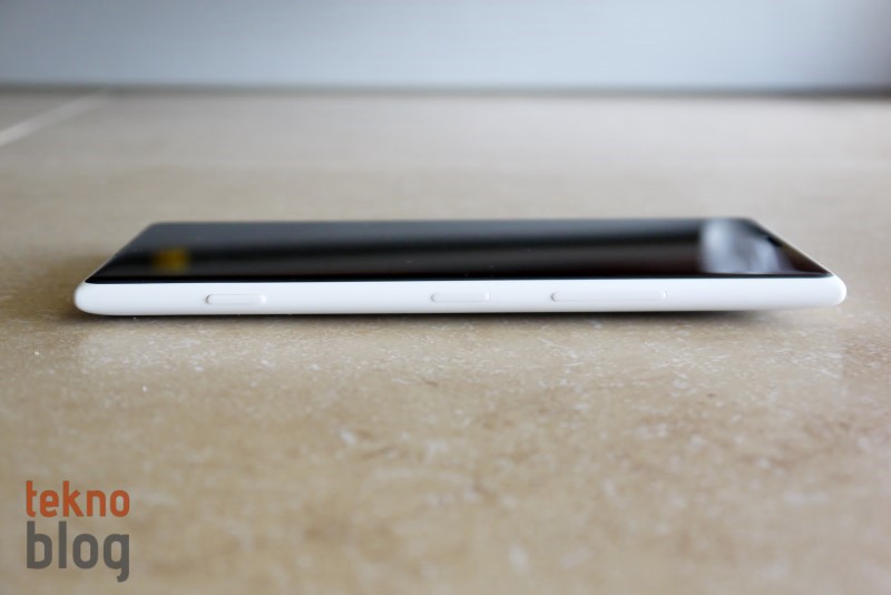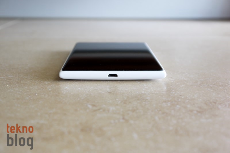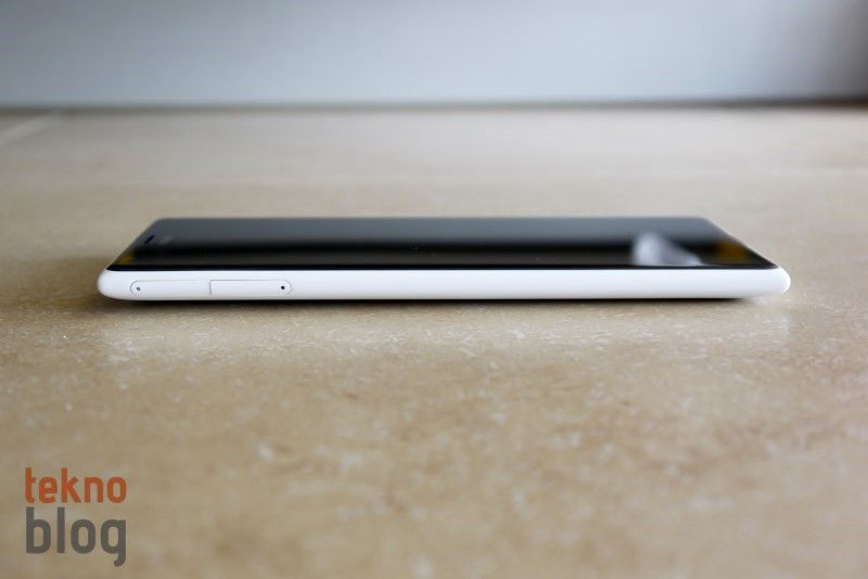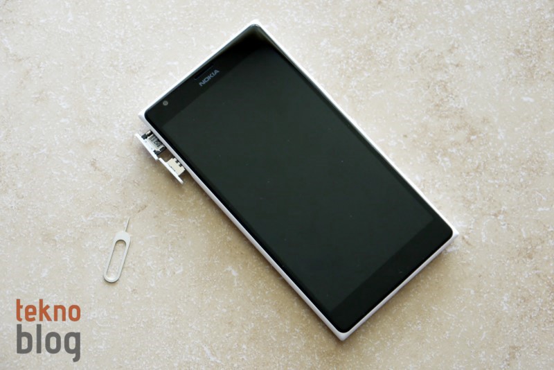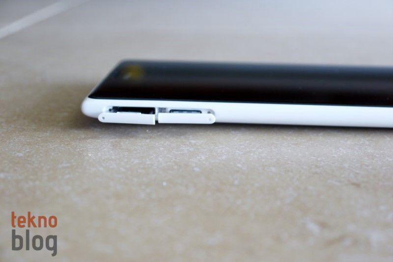Telefonun sol tarafından nano-SIM ve microSD kart yuvaları bulunuyor. Tepsi şeklinde tasarlanmış bu yuvaların çıkarılması için kutuya bir iğne de eklenmiş. Her iki tepsi yerine tam olarak otursa da, parmağınızla yokladığınızda hafif de olsa yerinden oynadığı dikkatimizi çekiyor. Aslında çok önemli bir sorun değil, ancak detaylara fazla takılan, cihazlarında yerinden oynayan parçaların bulunmasını sevmeyenler için bu dikkat çekici bir unsur oluyor.