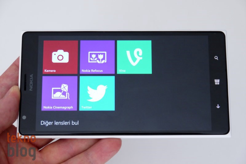 Fotoğraf ve video çekimi için Nokia Camera uygulaması kullanılıyor. Nokia Lumia 1020’den bildiğimiz bu uygulama otomatik çekim moduyla tüm ayarları kendisi görüp size sadece çekim tuşuna basma işini bırakırken, sunduğu manuel ayar seçenekleri sayesinde pozlama telafisi, beyaz dengesi, odak uzaklığı gibi parametreleri değiştirme ve isteğe göre kareler yakalama fırsatı veriyor. Akıllı sırama modu sayesinde hareketli nesneleri detayları eksiksiz biçimde çekme, çerçeve içinde istenmeyen hareketli nesneleri yok etme gibi imkanlar da sunuluyor. Ayrıca Nokia Camera uygulaması yüklü gelen veya Windows Phone Mağaza’dan yüklenebilen çeşitli lensleri de barındırıyor. Uygulama içinde yer alan Lensler bölümünden erişilen bu eklentiler sayesinde kameranın çekim seçeneklerini artırmak mümkün oluyor.