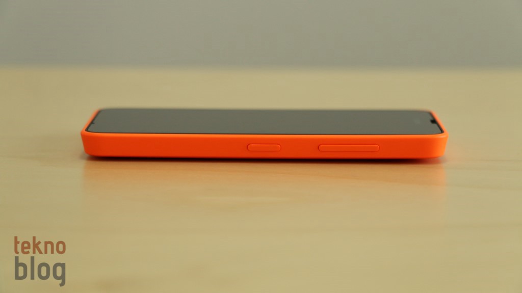 Tasarımdaki tipik Nokia alışkanlıklarını bu telefonda da görüyoruz. Sol kenarda herhangi bir tuş veya giriş yok. Sağ kenarda ses tuşları ve güç butonu bulunuyor. Ne var ki, kamera butonu mevcut değil, halbuki bu tuşun varlığı kameranın kullanımını daha da kolaylaştırıyordu. Kenardaki tuşlar fazla dışarı çıkmıyor, bu nedenle el yordamıyla bulmak biraz zorluyor, ayrıca derinlikleri de fazla değil. Yine de, yumuşak olduğunu ve bunun da kullanımda bir artı durum yarattığını söyleyebiliriz.