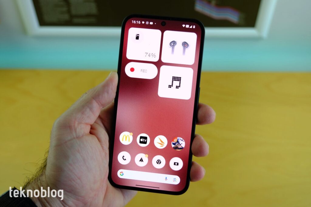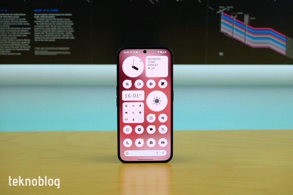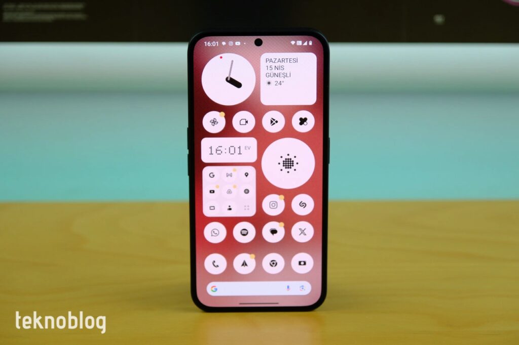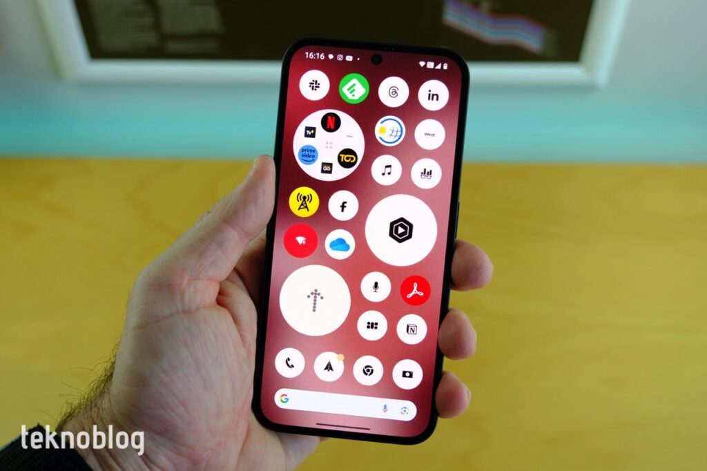 Tabii ki, Android’in esnekliği sayesinde Nothing, iPhone’dakinden daha fazla aracı sunuyor. Büyütülmüş uygulama klasörleri, ana ekranda daha düzenli bir görünüm ve kullanım imkanı sunuyor. Üstelik uygulama klasörleri, sadece matris yapısında olmakla kalmıyor, bir kadran görünümünde de kullanılabiliyor. Sık kullandığınız ve her zaman hızlı şekilde erişmek istediğiniz bir uygulamanın kısayolunu da uygulama klasörü boyutunda, rahatlıkla görünecek hâle getirebilirsiniz. Sık kullandığınız çeşitli ayarların kısayollarını da ana ekrana ekleyebilirsiniz. Bunun dışında, uygulama menüsünün rahatlığına alışmış olanlar için de, Ana ekrandayken aşağıdan yukarı doğru sürüklenerek erişilebilen, yukarıdan aşağı kaydırılarak gezinebilen bir uygulama çekmecesi bulunuyor.