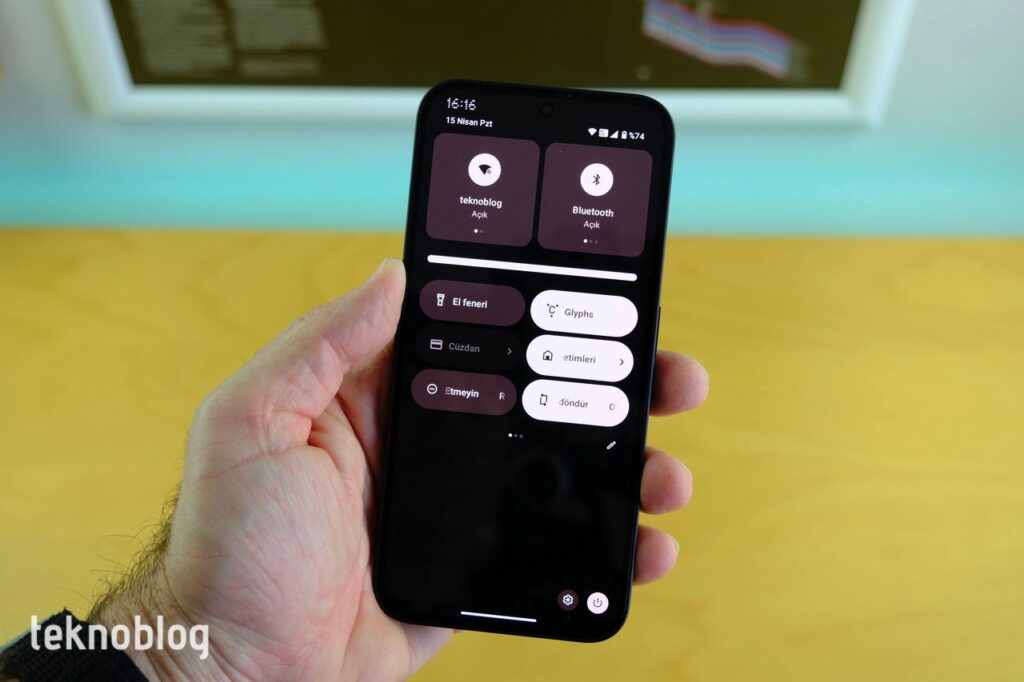 “Tasarım” bölümünde bahsettiğimiz Glyph özelliği için Ayarlar içinde “Glyph Arayüzü” başlıklı özel bir bölüm bulunuyor. Burada arkada yer alan üç LED lambanın nasıl kullanılacağını belirlemenize yarayan çeşitli araçları göreceksiniz. Üstelik Hızlı Ayarlar içinden de Glyph özelliğini kolaylıkla kapatabilirsiniz.