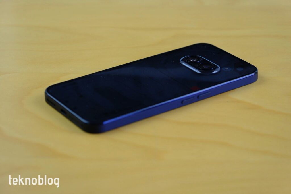 Telefonun alt kenarında USB-C portu, hoparlör, mikrofon ve nano SIM kart tepsisi var. Sağ kenarda güç düğmesi, sol kenarda ise ses tuşları var. Çoğu Android telefonda bunların sağ kenarda, bir arada olduğunu görmeye alıştık. Bu açıdan Nothing, biraz daha farklı bir yaklaşım sergiliyor. Tuşların pozisyonları iyi biçimde ayarlanmış, telefonu elinizde tutarken hareket ettirmeden her iki kenardaki tuşları da rahatça kullanabilirsiniz. Tuşlar dışa doğru yeterli çıkıntıya sahip, ayrıca çok sert veya yumuşak da değil, derinlikleri de iyi. Üst kenarda ikinci mikrofon mevcut.