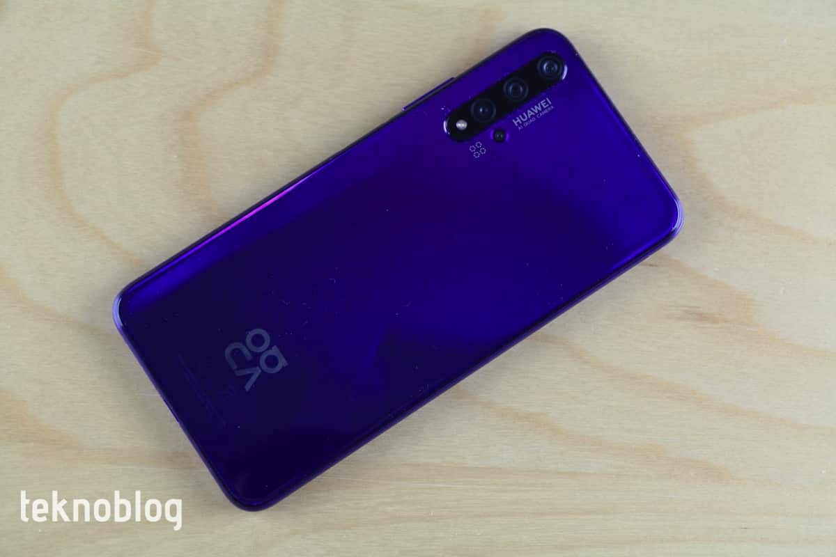 Huawei, 2019 ile birlikte Nova serisinde görsel açıdan kapsamlı bir değişikliğe gitmişti. Söz konusu değişikliğin izlerini Nova 5T’de de görmek mümkün oluyor. Test merkezimize gelen ve Huawei tarafından”Midsummer Purple” olarak adlandırılan mor renkli Nova 5T, Huawei’nin son yıllarda kullanıcılara sunduğu parlak ve değişken renkli telefonlardan biraz daha farklı görünüyor.