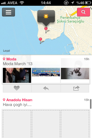 Instagram bağlantısının Now’a kazandırdığı özelliğiyse bir örnekle açıklamak mümkün. Diyelim ki, Küçükçiftlik Park’ta bir konser düzenleniyor. Konsere gelen izleyiciler günümüzün modasına uyarak konserde çektikleri fotoğrafları Instagram üzerinden paylaşıyor. Now kullanıcıları konserin gerçekleştiği mekanda çekilen fotoğrafların hepsini bir arada görerek orada yaşananlar hakkında farklı açılardan fikir elde edebiliyor. Şehrin kalbinin attığı yerlerde ne olup bittiğini görsel olarak görmenin güzel bir şey olduğu kesin.