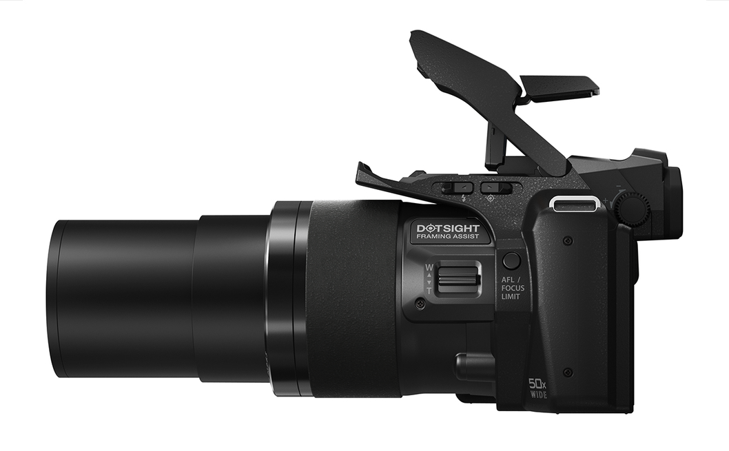 24-1200mm eşdeğer odak uzaklıklığı, 50x optik zum lens, lens tabanlı görüntü sabitleme gibi başlıca optik özelliklere sahip olan bu makinede aynı zamanda 920 bin noktalı elektronik vizör yer alıyor. Arkada bulunan 3 inç LCD ekran ise dokunma veya menteşeli yapı sayesinde hareket etme gibi özellikleri barındırmıyor.