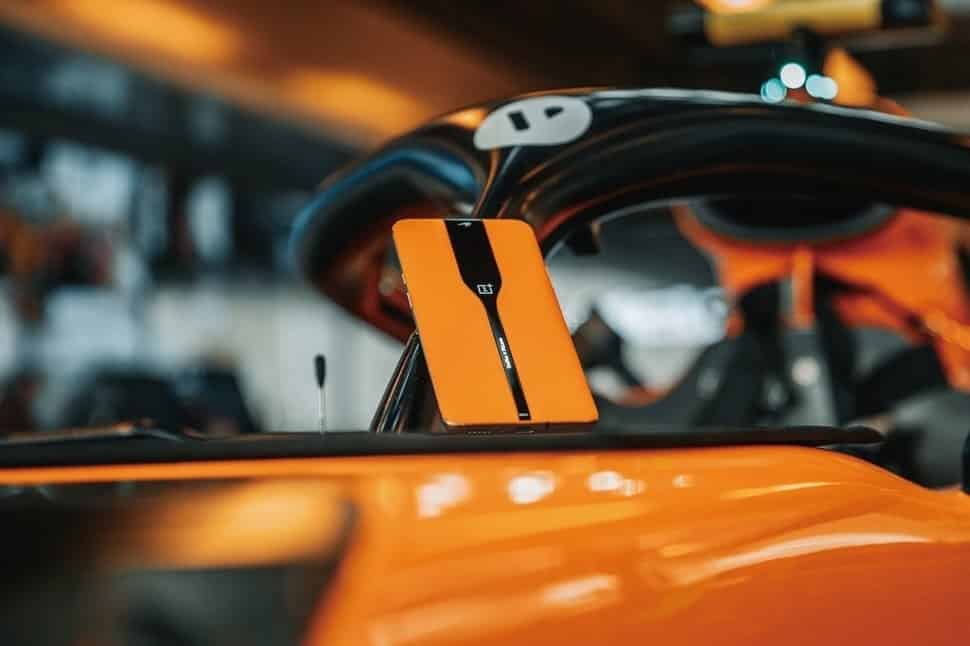 OnePlus Concept One’da da 7T Pro McLaren Edition’da olduğu gibi, turuncu renkli deri kaplama tercih edilmiş. Burada dikiş izlerinin belirgin biçimde görülmesi, 7T Pro McLaren Edition ile Concept One arasındaki en belirgin farklardan biri olarak göze çarpıyor. Arka panelin tam ortasındaki şeritte McLaren markasını görmek de mümkün oluyor.