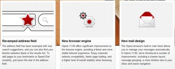 Opera’nın masaüstü sistemler için yeni bir versiyonu yayınlandı. 11.60 sürüm numaralı bu yeni versiyon çeşitli yeniliklerle birlikte geliyor. Bu yeniliklerin en dikkat çekicisi yenilenmiş bir adres çubuğunun varlığı. Opera 11.60’ın yenilenmiş adres çubuğu arama tavsiyeleri sayesinde kullanıcıların sitelere daha hızlı erişmesini sağlıyor.