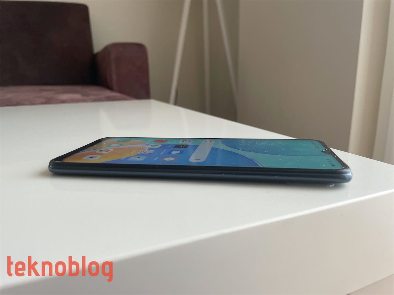 Oppo A15s’in üst kenarında herhangi bir şey bulunmuyor. Sol kenarda ise telefonun microSD ve nano SIM kart tepsisinin yerleştirildiği yuva yer alıyor. Sağ kenarda ise güç butonunu ve ses kontrol tuşlarını görmek mümkün.