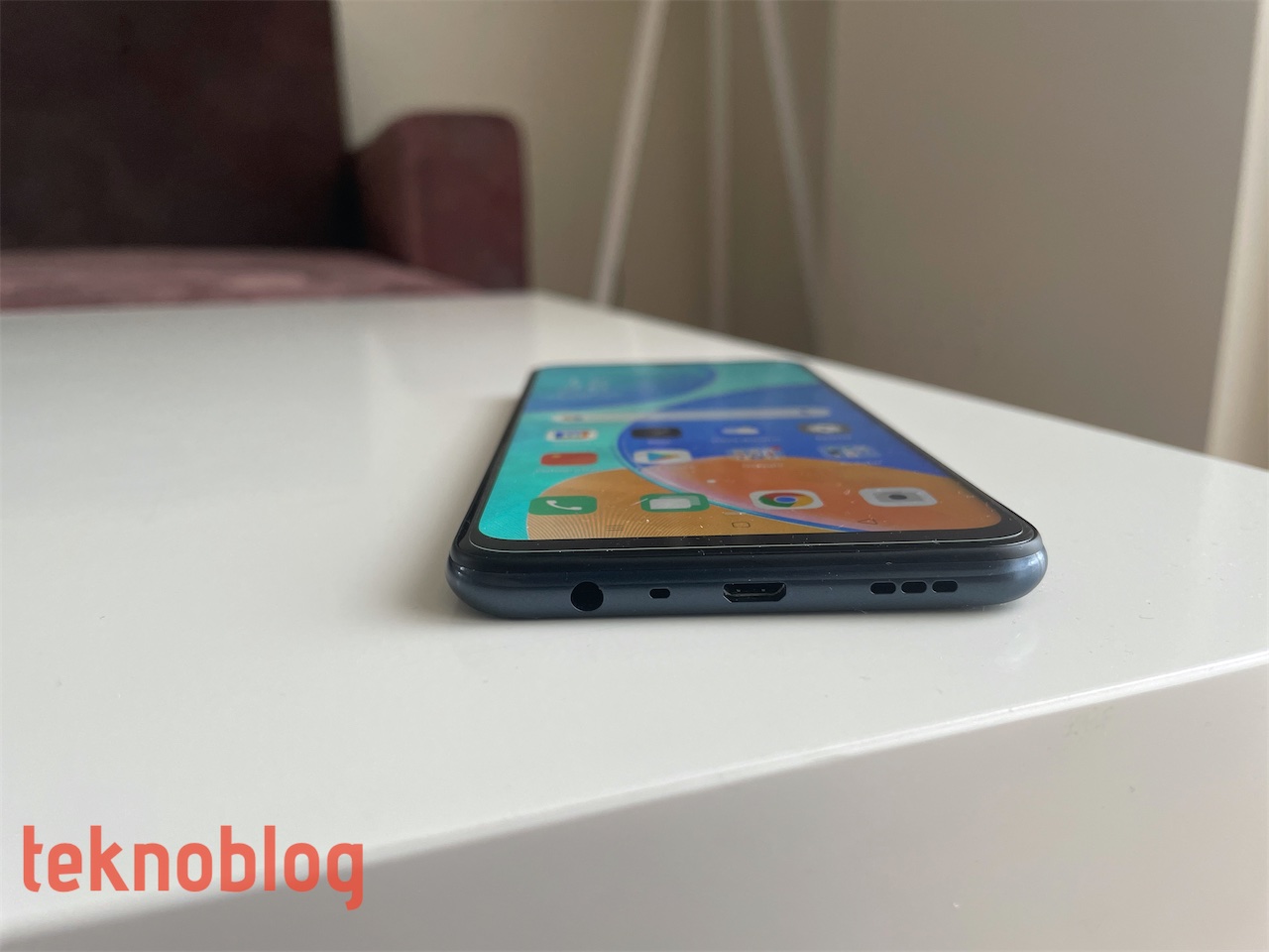Telefonun alt kenarı ise diğer kenarlara kıyasla daha kalabalık. Burada soldan sağa doğru sırayla 3.5 mm. kulaklık jakı, mikrofon, micro USB girişi ve hoparlör ızgarası bulunuyor. 2021’de çıkan bir telefonda micro USB girişini görmenin hayal kırıklığı yarattığı söylenebilir. Ancak A15s giriş segmentinde konumlandığı için bunu doğal karşılamak gerekiyor. Hoparlör ızgarasından çıkan sesin yüksekliği de makul seviyede.