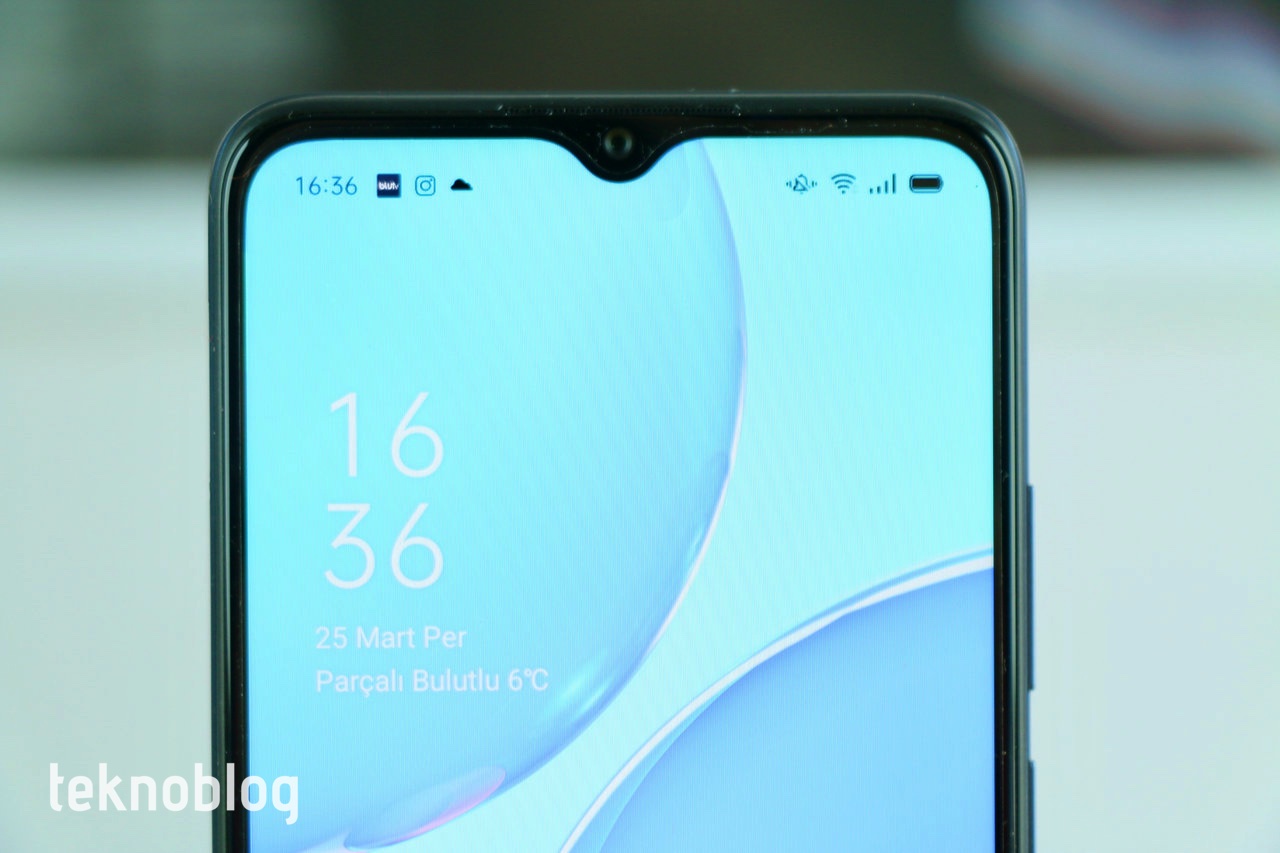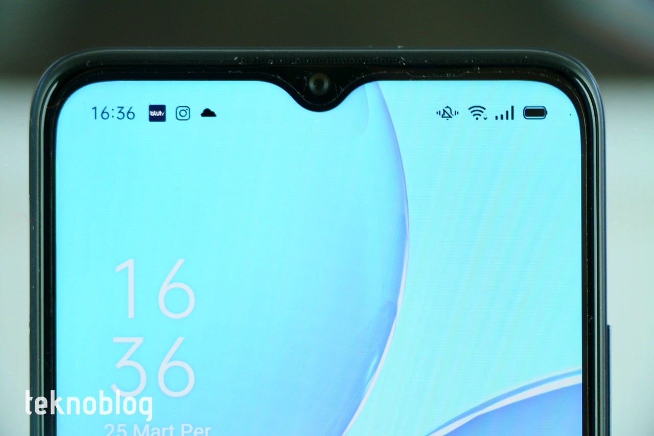 Oppo A15s’in ekranının üzerindeki çentik, telefonun ön kamerasına da ev sahipliği yapıyor. Ön kamera, telefonun yüz tanıma özelliği için de kullanılıyor. Bu özelliğin nasıl işlediğine ilerleyen bölümlerde değineceğiz.