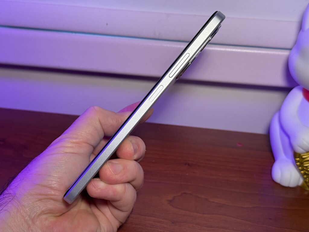 Cihazın tasarımında sade ve şık bir anlayış benimsenmiş. Yıldız Beyazı ve Parlak Siyah renk seçenekleriyle sunulan cihaz, üst sınıf bir görünüm sağlarken parmak izi tutmayan yüzeyiyle de kullanım kolaylığı sunuyor. Arka panelde kullanılan dokulu yapı, ele tam oturuyor ve kaymayı minimuma indiriyor. Aynı zamanda parlak ışığa tutulduğunda oluşturduğu ışıltılar da hoş bir görünüm yaratıyor. Kamera adası ise hafif bir çıkıntıya sahip ancak bu çıkıntı, cihazın genel estetiğini olumsuz etkilemeden zarif bir bütünlük oluşturuyor.