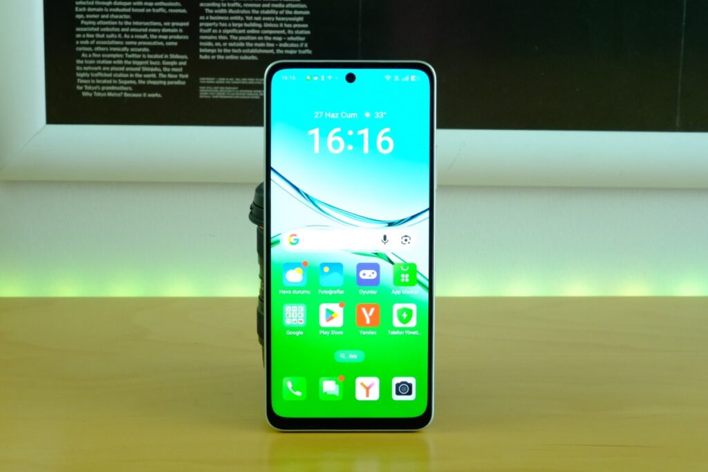 Renk üretiminde panel göz tırmalayan canlılık yerine doğal tonları tercih ediyor; yan açılardan bakıldığında kontrast kaybı hissedilir seviyeye çıkmıyor, böylece arkadaş grubuyla fotoğrafa bakarken telefonu evirip çevirmeye gerek kalmıyor. Öte yandan 720p çözünürlük, ince detaylarda hafif yumuşama getiriyor fakat Instagram’da gezerken pikselleri tek tek saymak niyetiniz yoksa rahatsız etmiyor. Bu tercih aynı zamanda GPU yükünü hafiflettiği için bataryaya soluk aldırıyor; 5800 mAh pil ile birleşince gün sonunda ekrana bakma süresi rakipleri geride bırakıyor. Renk sıcaklığı ayarıyla paneli mavi ya da sıcak sepya tonuna çekmek mümkün, gece modu da karanlıkta göz dostu bir okuma ortamı sağlıyor. Ortam ışığına göre beyaz noktasını otomatik ayarlayan seçenek TrueTone benzeri bir konfor katıyor. Kısacası ekran, kâğıt üstündeki rakamları aşan dengeli bir kullanıcı deneyimi sunuyor.