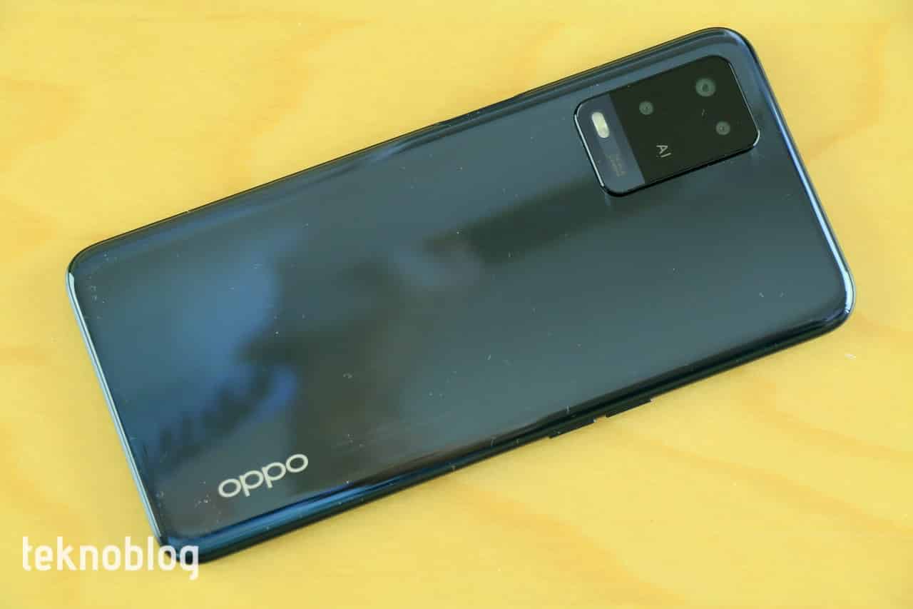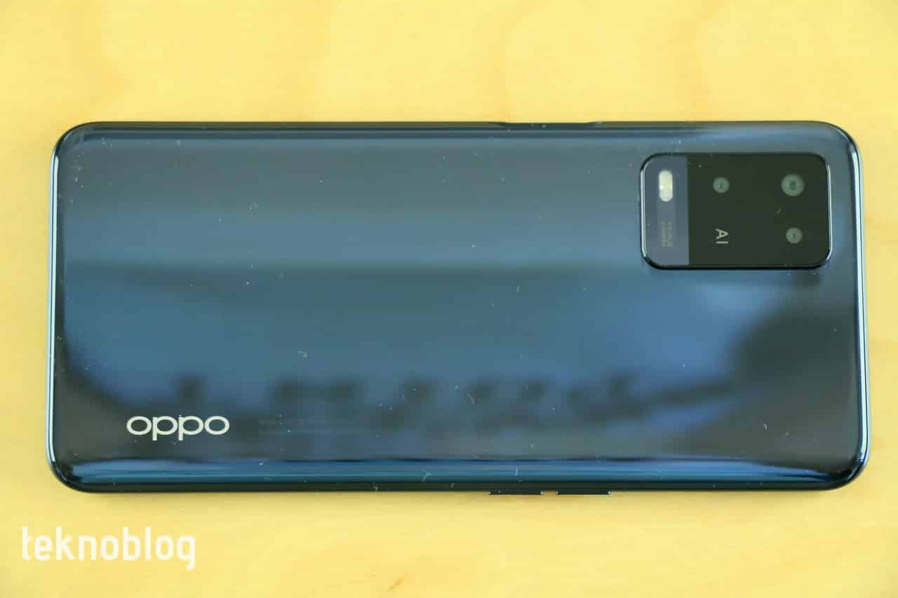 Telefonun arka panelinde ise sol üst köşede dikdörtgen şeklindeki kamera adası göze çarpıyor. Burada üç kamera sensörü ve LED flaş yer alıyor. İlk bakışta dört kamera var gibi görünse de, bir yuvarlağın üzerinde sadece AI yazısı bulunuyor. Panelin sağ alt köşesinde ise Oppo logosu yer alıyor.