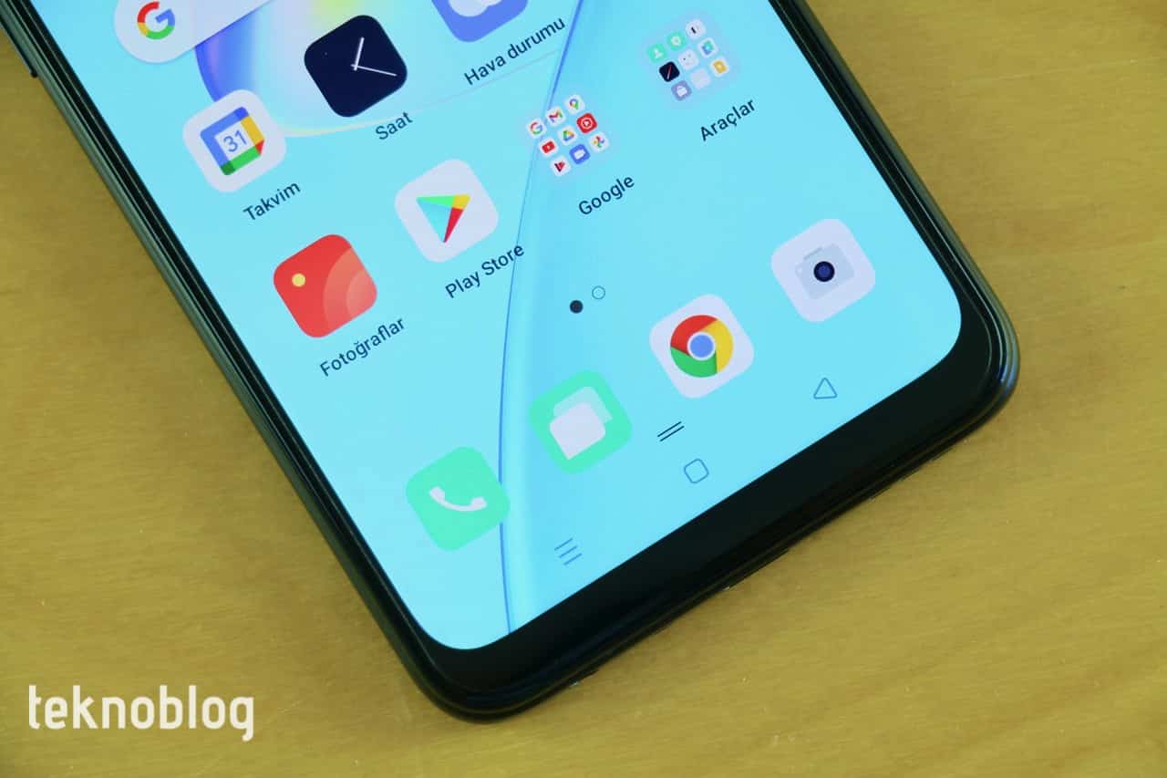 Oppo A54’ün ekranının etrafındaki çerçevenin günümüz standartlarına kıyasla biraz kalın olduğu söylenebilir. Bu kalınlık alt kenarda tahmin edilebileceği üzere biraz daha artıyor. Ancak bunun A54’ün segmentindeki bir telefon için doğal bir durum olduğunu belirtmeden geçmeyelim.