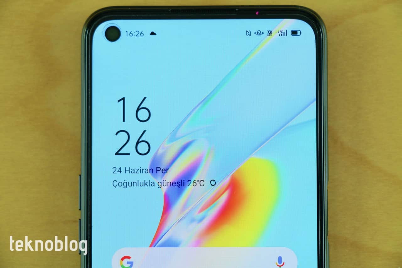 Oppo A54’te 6.51 inç büyüklüğünde IPS LCD ekran bulunuyor. Bu ekranın sol üst köşesinde telefonun ön kamerasının yerleştirildiği yuvarlak delik mevcut. Ekran, yukarıda da belirttiğimiz gibi telefonun ön panelinin yüzde 82.6’lık kısmını kaplıyor.