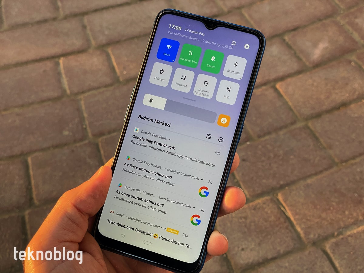 Ekranın üst kısmındaki damla çentik, tam ekranda oyun oynarken veya video izlerken görsel deneyimi fazla etkilemiyor. Ekran parlaklığı da yeterli seviyede. Dış ortamda kullanırken de herhangi bir olumsuzluk veya sıkıntı yaşanmıyor. Öte yandan mavi ışık filtresi sayesinde özellikle akşam ve gece saatlerinde ekranın mavi ışığının gözünüze olumsuz etkilerini azaltabilir, uykunuzun kaçmasının önüne geçebilirsiniz. IPS LCD ekranın görüş açıları yüksek, renkler ise çok canlı sayılmaz, renk skalasının biraz daha soğuk tarafına doğru kayan bir durum söz konusu.