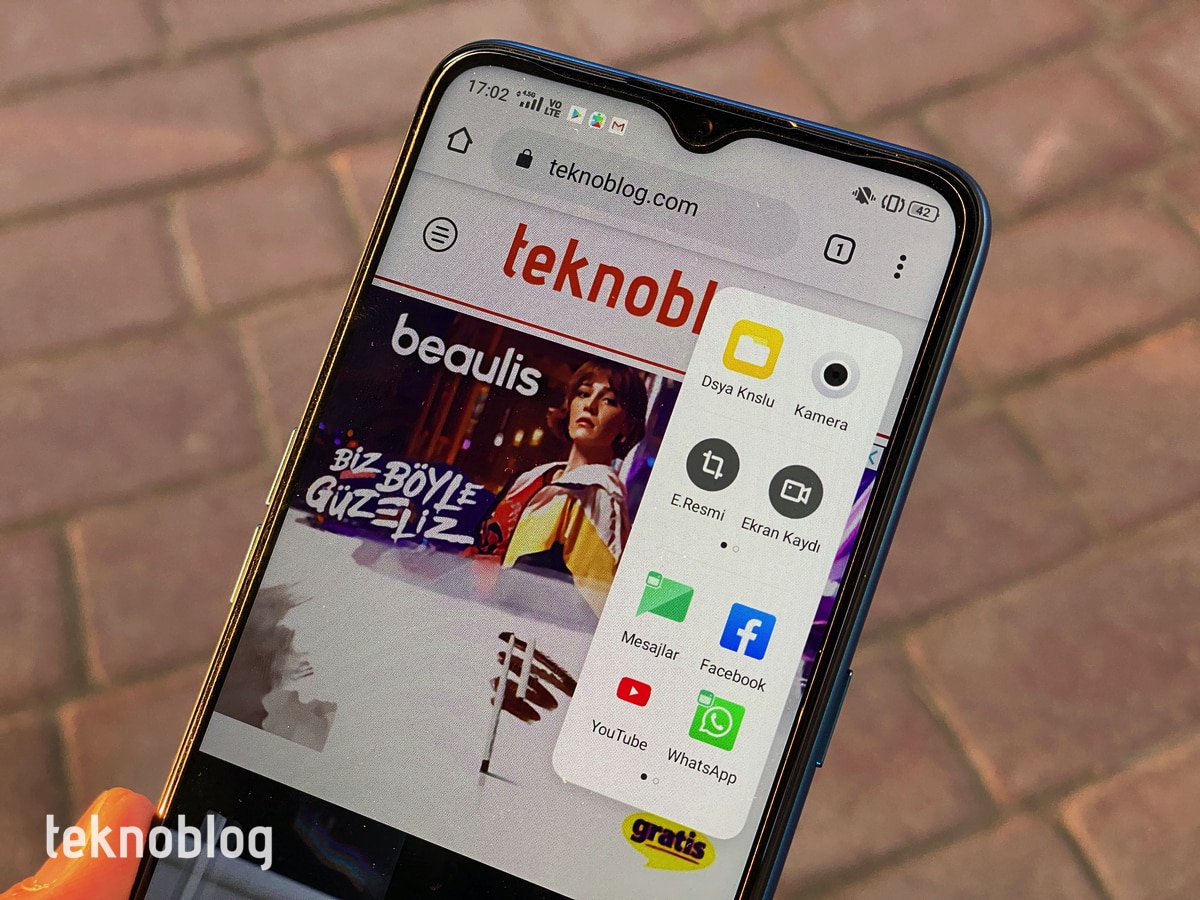 Öte yandan Samsung’un amiral gemisi telefonlarında gördüğümüz Edge uygulamalarına benzer bir kenar çekmecesi de var. Ekranın sağ kenarına bakarsanız, ince ve uzun bir çekmece simgesi görürsünüz. Bunu ekranın ortasına doğru çektiğinizde de Dosya Konsolu, Kamera, Ekran Resmi, Ekran Kaydı gibi araçları görebilirsiniz. Aynı zamanda Mesajlar, Facebook, YouTube gibi uygulamaların kısayolları var. Buraya başka uygulamaları da ekleyebilirsiniz.