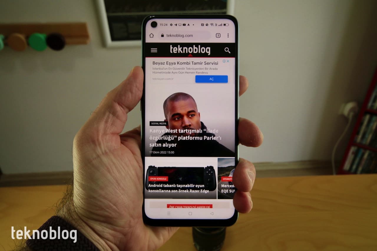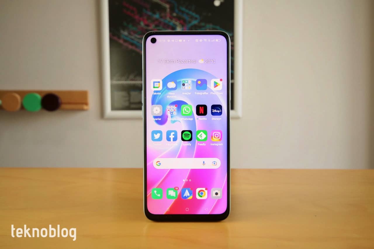 Oppo A96’nın ekranı 6.59 inçlik köşeden köşeye uzunluğa sahip. Ekran köşeleri, telefonun yuvarlatılmış köşeleriyle uyum taşıyor. IPS LCD ekran 1080 x 2412 piksel çözünürlüğe sahip. 20:9 görüntü oranıyla ince ve uzun formda, daha çok düşey yönde kullanım, web sitelerini görüntüleme ve işler için elverişli görünüyor. Bununla birlikte yatayda video izlerken de ihtiyaçlara iyi şekilde cevap veriyor. Videoları 16:9 formatta izlerken sağda ve solda kalın çerçeveler var, ancak bunun bizi çok fazla etkilemediğini söyleyebiliriz. Alttan ve üstten alan kaybetmeyenler için 16:9 formatında görüntüleme de iyi.