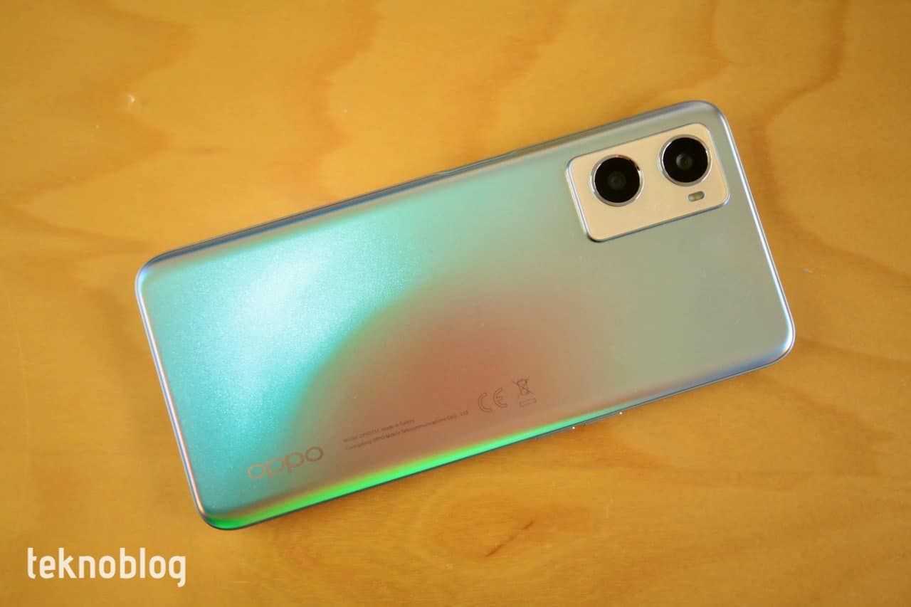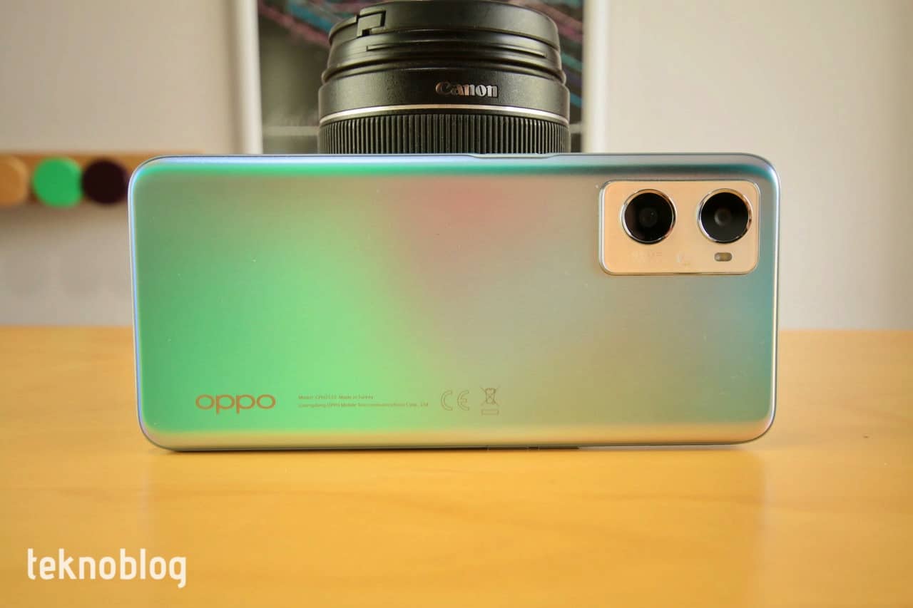 Arka panel kenarlara doğru kavis yaparak telefonu daha rahat kavramayı sağlıyor. Sol üst köşede dikdörtgen biçiminde bir kamera modülü var. Bu kamera dışarı doğru fazla çıkıntı yapmadığı için, telefon bir yüzeye konulduğu zaman fazla oynama yapmıyor. Yine de, bu kamera çıkıntısının etkisini tamamen kaldırmak için telefonun kutusundan çıkan şeffaf silikon kılıfı kullanabilirsiniz. Sizi ek kılıf masrafından kurtaracak bu kılıf telefonu sıkıca sarıyor ve hoş tasarımını gölgelemiyor. Ne var ki, biz bu telefonu deneyimlediğimiz süre boyunca kılıfı kullanmadık ve herhangi bir olumsuzluk görmedik. Arka yüzü gerçekten kir tutmuyor, çizilmelere karşı dayanıklı. Aynı durum kenarları saran plastik çerçeve için de geçerli. Bu arada ön tarafı kaplayan sağlam camın üstünde de koruyucu filmin en baştan yerleştirildiğini belirtmeden geçmeyelim. Ne var ki, Oppo bu filmi yapıştırırken fazla özenli davranmamış, özellikle kamera deliğinden hizalamanın düzgün biçimde yapılmadığı görülüyor. Yine de, ekran koruyucu filmi olmadan yapamayanlar ek masraftan kurtarılıyor. Üstelik kendi başınıza yapıştırıp hava kabarcıklarıyla mücadele etmek zorunda da kalmıyorsunuz.