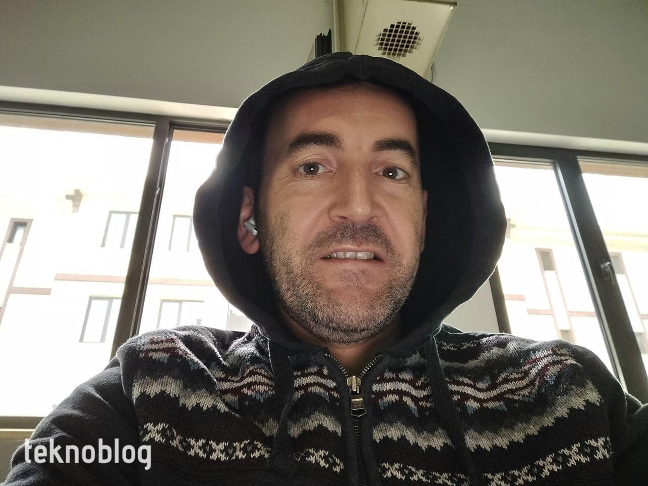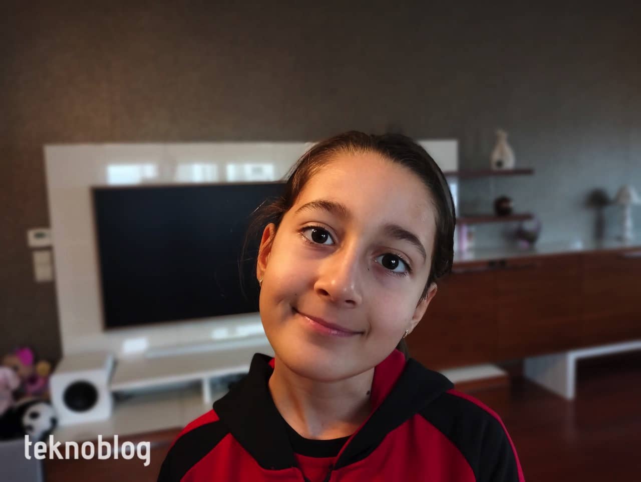 Ön taraftaki selfie kamera ile farklı ışık koşullarında tatmin edici fotoğraflar çekebilirsiniz. Bu kameranın da portre fotoğraf performansını genel olarak beğendik, saç teli ve benzeri unsurların ayrımını fena yapmıyor. Bununla birlikte, pürüzsüzleştirme uygulandığı için detaylarda kayıplar var. Yine de, bu tarz fotoğrafları genel olarak sosyal medyada paylaşacağınız için sorun olmayacaktır.