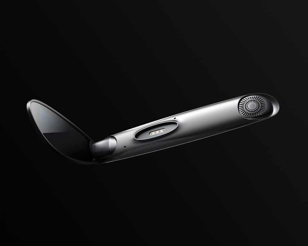 Oppo’nun Ürün Direktörü Yi Xu’ya göre lens 0,7 mm kalınlığında ve bir sirkadanın kanatlarından ilham alan bir şekle sahip. Camda görüntülenen içerik maksimum 1400 nit parlaklığa ulaşıyor, 16 seviyeli gri tonlamalı veya 256 seviyeli gri tonlamalı olarak gösterilebilir. Çerçeve gümüş veya siyah renkte ve iki farklı boyutta geliyor.