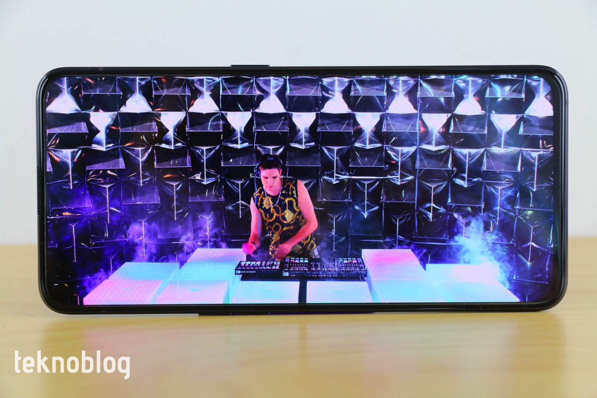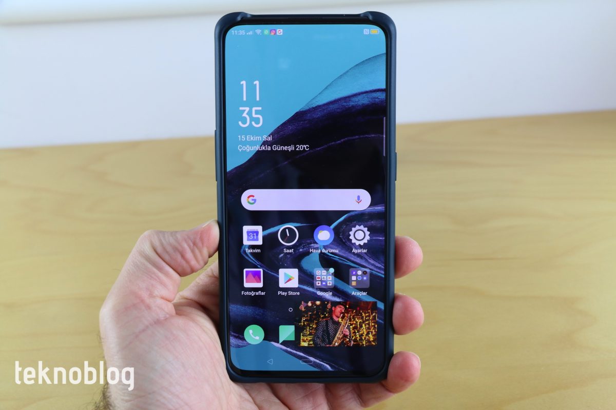 Oppo, çentik veya delikle kesintiye uğramış ekran kullanmamak adına böyle bir mekanizmaya yer veriyor. Sonuç olarak biz kullanıcılara da zengin bir görsel deneyim kalıyor. 6.5 inç ekran için Full HD çözünürlük yeterli görünüyor. 20:9 görüntü oranıyla epey uzun ve dar bir ekran var karşımızda. AMOLED ekranın parlaklığı yüksek, görüş açıları geniş. HDR desteği de var ve YouTube’da test ettiğimiz birkaç video gerçekten etkileyici sonuçlar verdi.