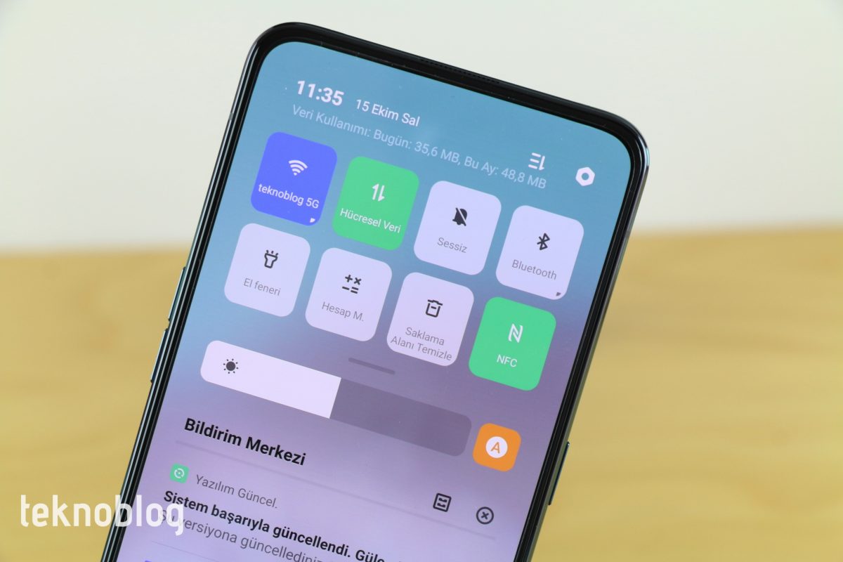 Oppo Reno 2’de Android 9 Pie çalışıyor ve üstünde de ColorOS 6.1 geliyor. Kurulum işlemi hızlı şekilde tamamlanıyor. Kurulum esnasında ekran içi parmak izi okuyucusuna parmak izini de ekliyoruz. Parmak izi okuyucusu, şimdiye kadar gördüğümüz bu tarz donanımlar içinde en hızlısı ve rahatlarından bir tanesi. Klasik parmak izi okuyucusunu aratmıyor. Bu arada açılır selfie kamerayı da kullanabilir, ekran kilidi için yüz tanımadan yararlanabilirsiniz. Yöntem kulağa pek hoş gelmiyor, ancak ekranı açtığınız her seferde telefonun üst kısmındaki kamera mekanizmasının açılıp kapanması fazla yadırgatıcı gelmiyor.