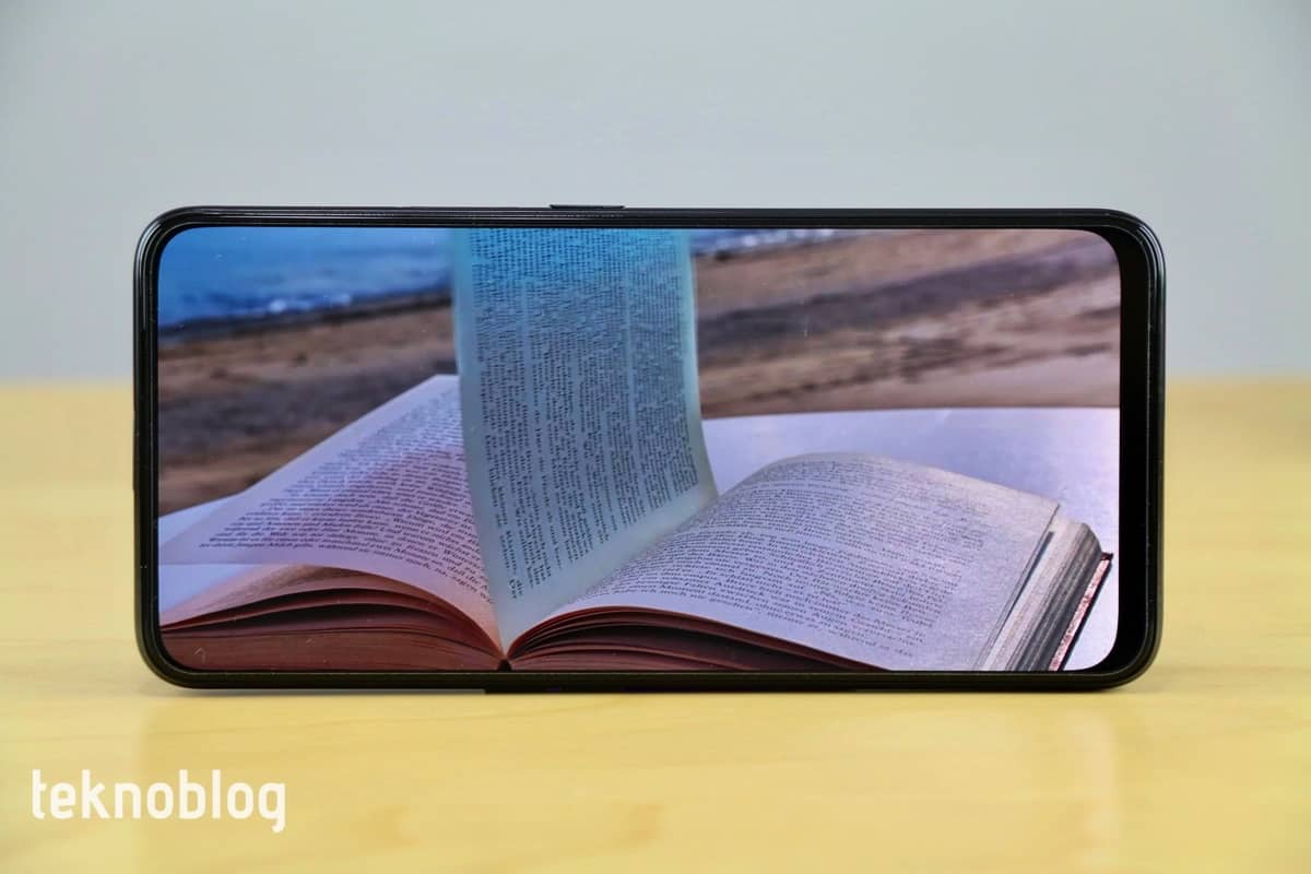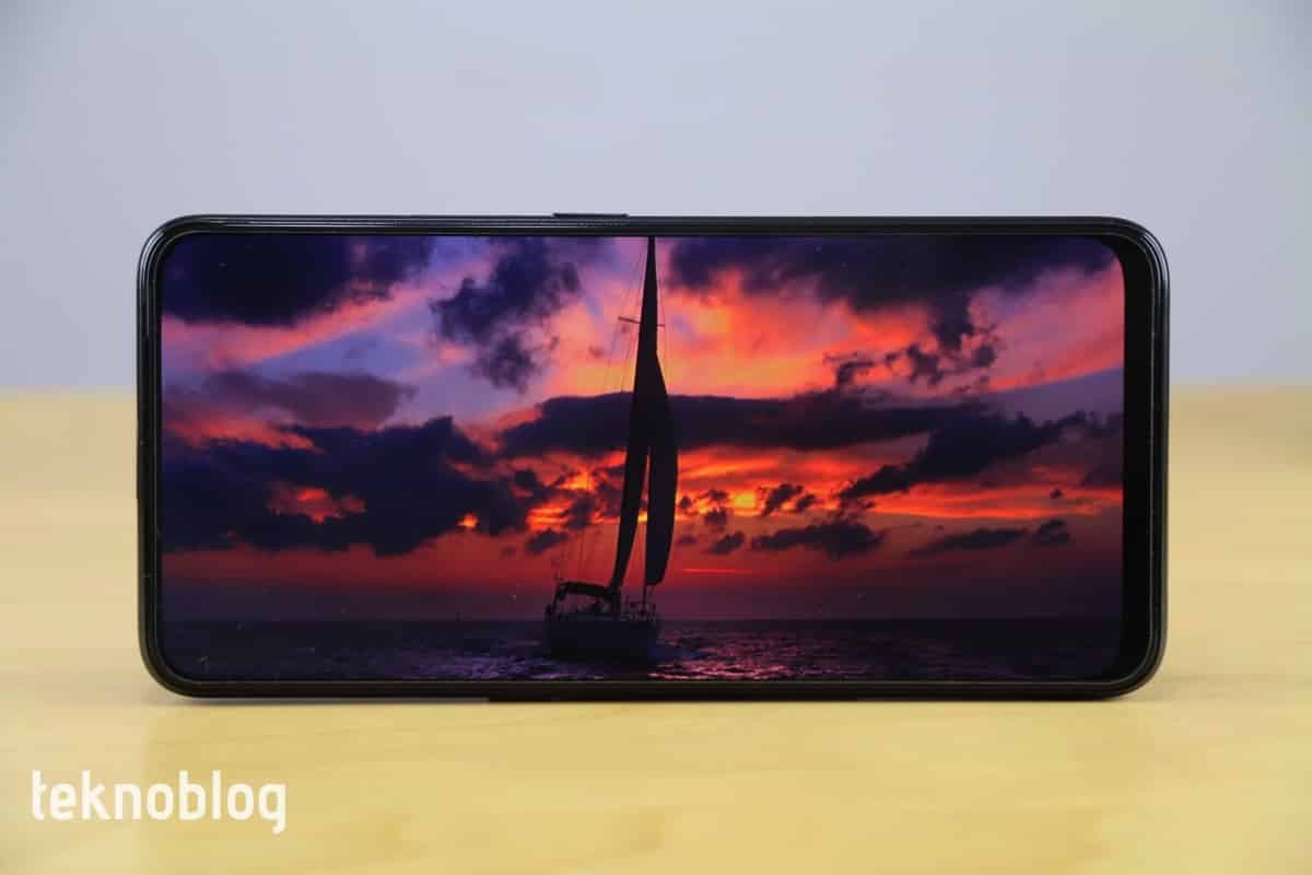 Reno 2Z’nin 6.53 inç ekranı 1080 x 2340 piksel çözünürlüğe sahip. Herhangi bir delik veya çentikle kesintiye uğramıyor ve tam ekran deneyimini sunuyor. 19.5:9 görüntü oranlı ekran özellikle web sitelerinde gezinirken veya oyun oynarken tam ekranın tadını iyi şekilde çıkarmayı sağlıyor. Ancak genellikle 16:9 görüntü oranındaki videoları izlerken genel görünüme bağlı kaldığımızı söylemeliyiz. Eğer sinema filmleri izliyorsanız, bunlar genel olarak 21:9 görüntü oranında olduğu için tadını daha iyi şekilde çıkarabilirsiniz. 395 ppi piksel yoğunluğuna sahip. Ekrana baktığımızda yazıların ve grafiklerin yeteri kadar keskin olduğunu görüyoruz. Bu açıdan herhangi bir sıkıntı hissetmedik.