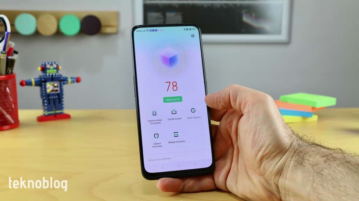 Yüklü gelen uygulamalara baktığımızda Google’ın birçok uygulamasını görüyoruz. Ses kaydedici, pusula, FM radyo gibi araçlar da mevcut. Telefon Yöneticisi uygulaması saklama alanı temizleme, virüs tarama ve bunun gibi bakım işlerini üstleniyor. Oyun Alanı ise Reno 2Z’ye yüklediğiniz oyunların otomatik olarak eklendiği bir bölüm. Oyunun optimum şekilde başlaması için Performans Modu, Sessiz Zaman ve diğer ayarları sunuyor. Öte yandan oyun oynadığınız sırada çeşitli kontrolleri açarak oyundan çıkmadan gerekli ayarlamaları da yapabilirsiniz.