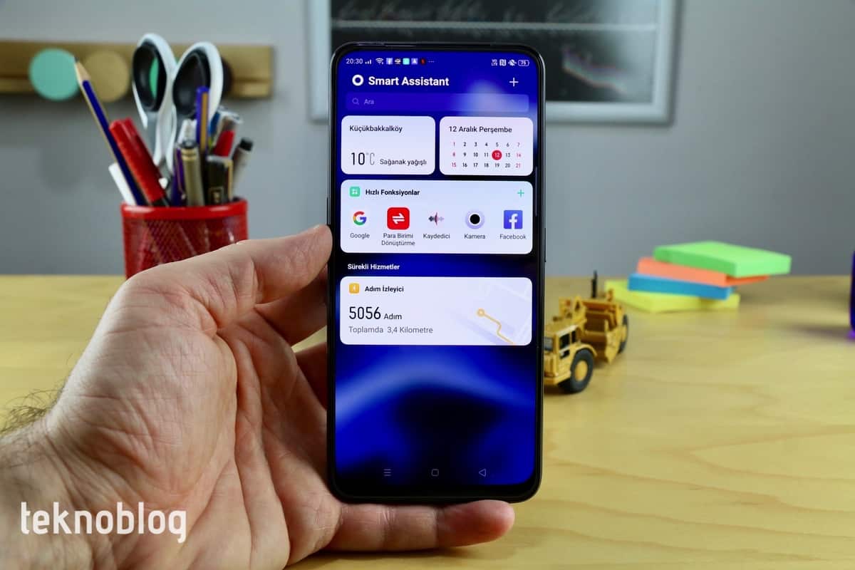 Ekrandan sözü açmışken Reno 2Z’de ekran içi parmak izi okuyucusunun bulunduğunu da belirtelim. Reno 2’de olduğu gibi, 2Z’de de bu birim oldukça hızlı şekilde işliyor. Telefonu kullandığımız süre boyunca hem parmak izi hem de yüz tanıma etkin durumdaydı. Ancak çoğunlukla parmak izi okuyucusu bize yetti ve açılır selfie kamera mekanizmasının 200 binlik garantisinden de tüketmemiş olduk.