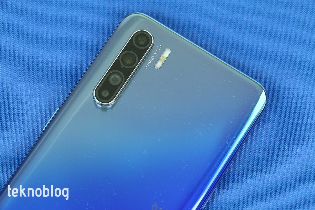 Oppo Reno 3’ün arkasında ise sadece sol üst köşeye yerleştirilmiş dörtlü bir kamera sistemi, LED flaş ve sağ alttaki Oppo logosu bulunuyor. Oppo Reno 3’te parmak izi tarayıcısının daha önce de belirttiğimiz gibi ekranının içine yerleştirilmesi, telefonun görüntüsünü daha “derli toplu” hâle getiriyor ve şıklığını artırıyor.