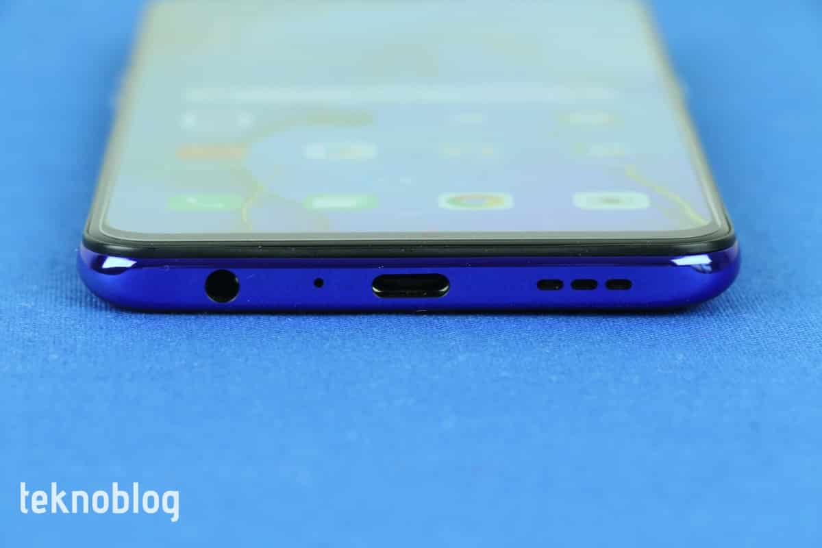 Oppo Reno 3’ün alt kenarı ise diğer kenarlara göre oldukça kalabalık. Bu kenarda soldan sağa doğru sırasıyla 3.5 mm. kulaklık jakı, mikrofon, USB-C girişi ve hoparlör ızgarası bulunuyor. Oppo Reno 3’ün hoparlöründen çıkan sesin oldukça yüksek olduğunu belirtmekte fayda var. Müzik deneyimi için hoparlörden çıkan sesin kalitesi çok iyi olmasa da, burada önceliğin yüksek seste olduğunu unutmamak gerekiyor.