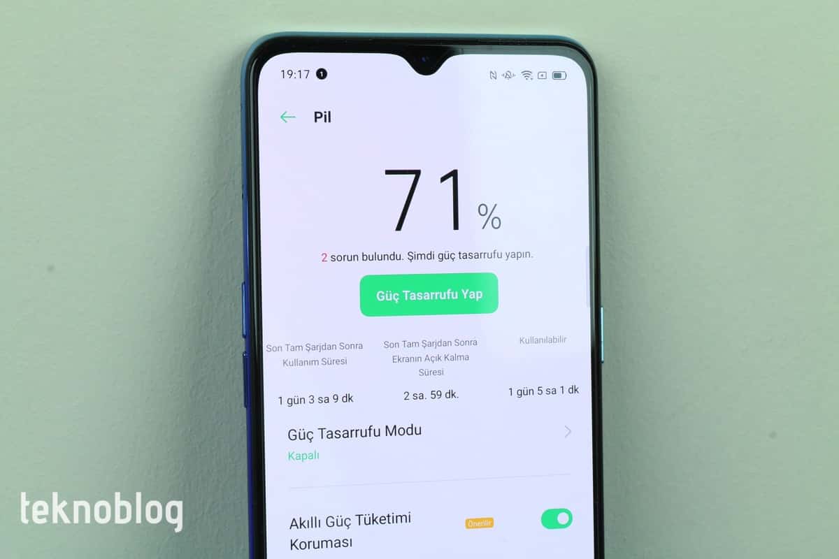 Reno 3’ün pili; sosyal medya uygulamalarında gezinmek, birkaç telefon görüşmesi yapmak, Facebook Messenger’da mesajlaşmak, Chrome ile internette dolaşmak, YouTube ve Netflix’te video izlemek, Spotify’da müzik dinlemek ve PUBG ya da Call of Duty Mobile oynamak gibi eylemlerin bulunduğu yoğun bir kullanım senaryosunda bile günü tamamlamayı başarıyor.