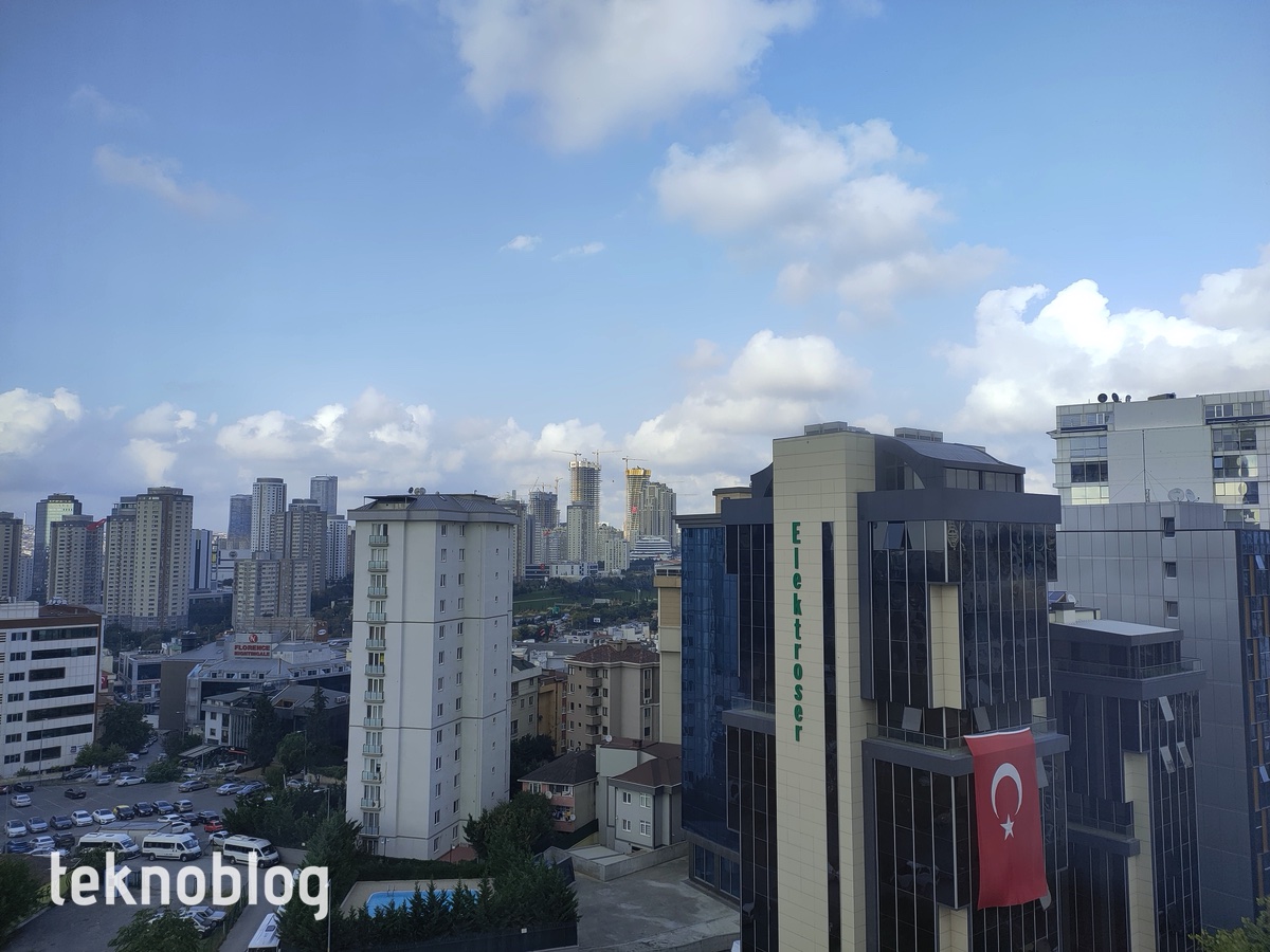 Kamera uygulaması kullanışlı bir tasarımla geliyor. Ekranın bir kenarında çekim tuşu, çekim modları ve kamera değiştirme düğmesi var. Ayrıca yakınlaştırma ve geniş açıya geçiş de bu tarafta yer alıyor. Fotoğraf modu varsayılanda yer alırken Video, Gece, Portre gibi modlar da kolay erişilebilir şekilde çubuğa dizilmiş. Daha Fazla bölümünde ise Pro, Ağır Çekim, Metin Tarayıcı gibi modlar var. Google’ın görüntü tabanlı arama aracı Google Lens için de burada bir kısayol bulunuyor. Ekranın diğer tarafında flaş, HDR, Parlak Renk, Filtreler gibi sık kullanılan kamera araçlarına hızlı erişim imkanı var. Öte yandan hamburger menü simgesine tıklatarak ayarlara gidebilir, 48 megapiksel tam çözünürlük moduna geçebilir, sayacı etkinleştirebilir veya çerçeve oranını değiştirebilirsiniz.