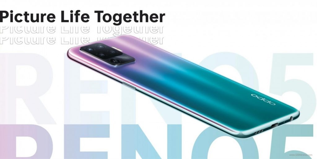 Reno 5 F için kullanıcılara Akışkan Siyah ve Fantastik Mor olarak adlandırılan iki renk seçeneği sunuluyor. Akıllı telefonda 6.43 inç büyüklüğünde bir AMOLED ekran bulunuyor. Bu ekranın yenileme hızı 60 Hz, çözünürlüğü ise 2400 x 1080 piksel. Maksimum parlaklık seviyesi 800 nit olan bu ekranın parmak izi tarayıcısı da ekrana entegre edilmiş durumda.