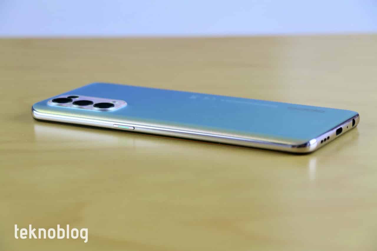Söz arka yüzden açılmışken, Oppo Reno 5’in mat ve pürüzlü bir arka yüzü var. Normalde parlak ve pürüzsüz arka yüzler daha çekici görünür, ancak Oppo mat yüzeyde bile ortaya oldukça iyi bir iş çıkarmış. Telefonun ışığı yansıtan arka yüzü, oldukça hoş bir ışık oyunu oluşturuyor. Oppo, önceki telefonlarıyla da etkileyici ışık ve renk oyunlarını oynamayı iyi bilirdi. Aynı alışkanlığın Oppo Reno 5’te de sürdürüldüğünü görüyoruz. Orta segment telefonlarda suya ve toza dayanıklılık özelliğini pek görmeyiz. Aynı durum Reno 5 için de geçerli. Bu nedenle suya veya sıvıya yakın olduğunuz durumlarda telefonunuzu iyi şekilde korumanızda fayda var.