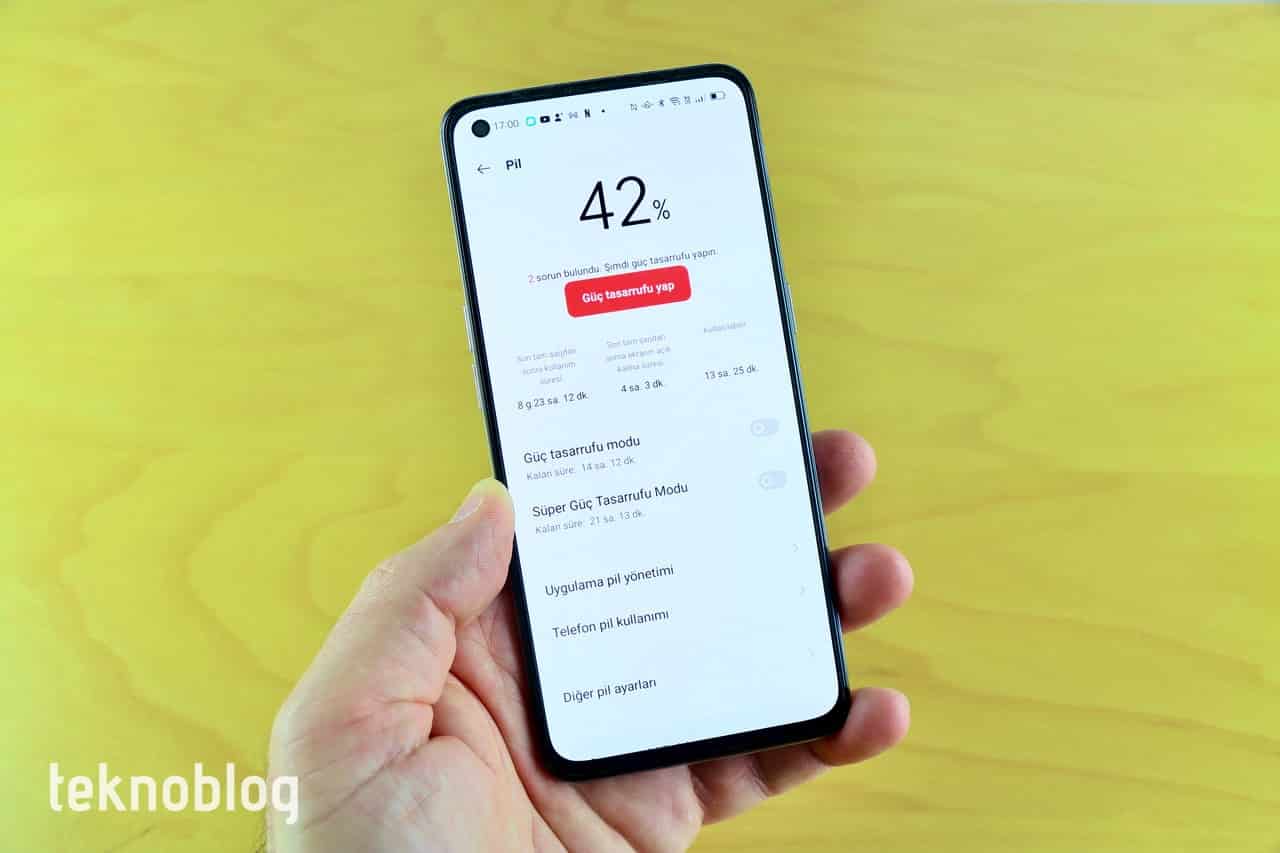 Pil tarafına geldiğimizde, Oppo Reno 5’in Türkiye’de satılan 4G destekli versiyonunda 4310 mAh kapasiteli pil var. Bu pil iyi bir performans sergiliyor. Normal yoğunluklu kullanımda bir günü rahatlıkla çıkarıyor. Çoğu durumda iki günde bir şarj etmek bizim için yeterli oldu. Şarj demişken, telefonun hızlı şarj performansı da etkiliyor. Kutudan çıkan SuperVOOC hızlı şarj teknolojisi destekli 65W şarj adaptörüyle telefonun pilini yaklaşık 50 dakikada şarj etmek mümkün oluyor. Sadece yarım saatte ise yüzde 60’ı aşan bir bölümü şarj oluyor. Bu şarj performansı sayesinde Reno 5’in gün içinde yarı yolda bırakması pek mümkün olmuyor. USB-C portu üzerinden başka cihazları şarj etmesini de pil tarafındaki dikkate değer artılardan biri olarak nitelendirebiliriz.