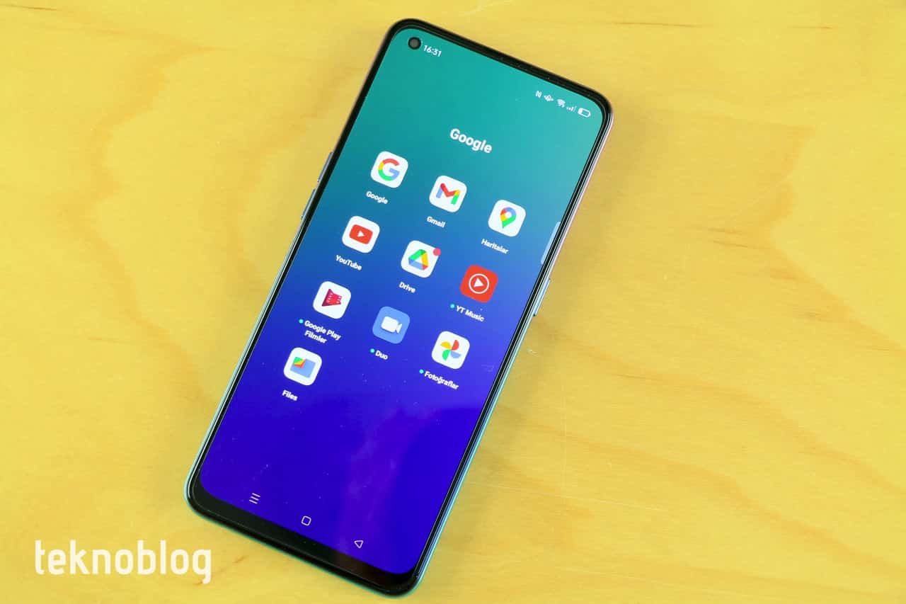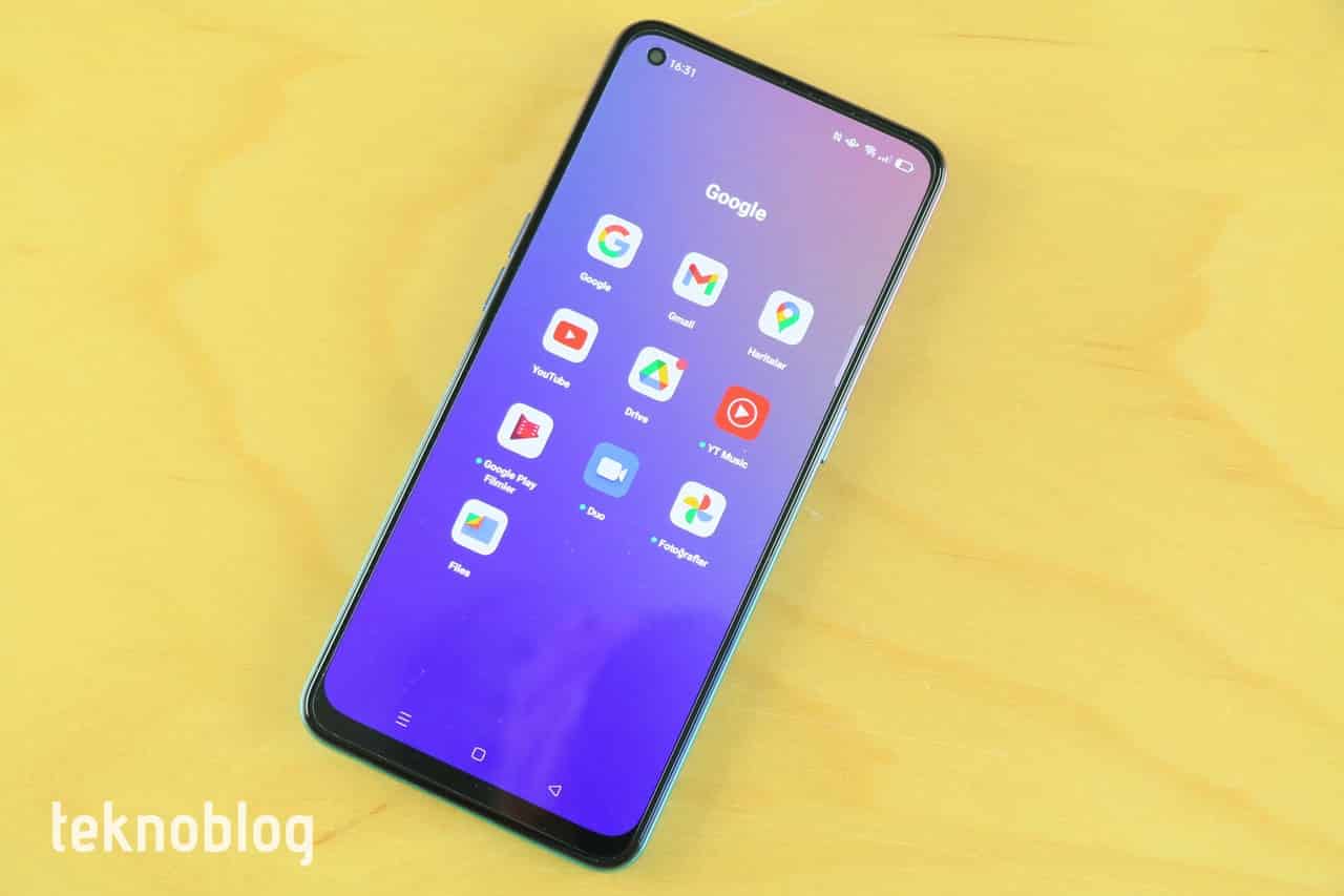 Hemen hemen tüm Android telefonlarda ön yüklü bulunan Google uygulamalarını Reno 5 Lite’ta da bulmak mümkün. Ana ekrandaki Google klasöründe Gmail, YouTube, Google Drive, Haritalar gibi uygulamalar yer alıyor.