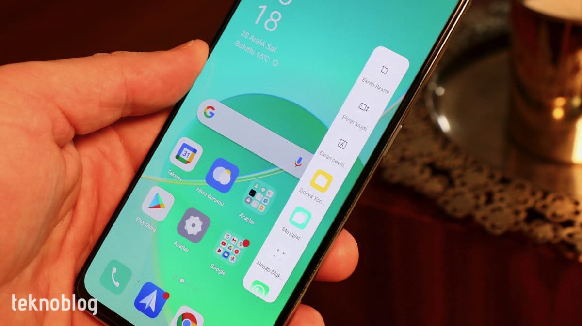 Ana ekranın en solunda bulunan Smart Assistant ise, her ne kadar fazla araç sunmasa da, Hava Durumu, Adım izleyici, Favori Kişiler ve Hızlı işlevler gibi araçlarıyla telefonda en çok ihtiyaç duyacağınız araçlara kolaylıkla erişebilirsiniz. Kolaylaştırıcı bir başka araç ise Akıllı Kenar Çubuğu. Bunu açtığınızda telefonun kenarında bir çekmece beliriyor. Bunu ortaya doğru çektiğinizde Ekran Resmi, Ekran kaydı, Ekran çevirici, Hesap Makinesi gibi kullanışlı araçlara hızlıca erişebilirsiniz. Buraya sık kullandığınız uygulamaları da eklemeniz mümkün. Bunların yanı sıra Oppo, Kolaylaştırıcı araçlar bölümü altında telefonu dokunmatik hareketlerle kolaylıkla kullanmanıza imkan tanıyacak çeşitli kontroller sunuyor. Bunlara da göz atmanızı tavsiye ederiz.